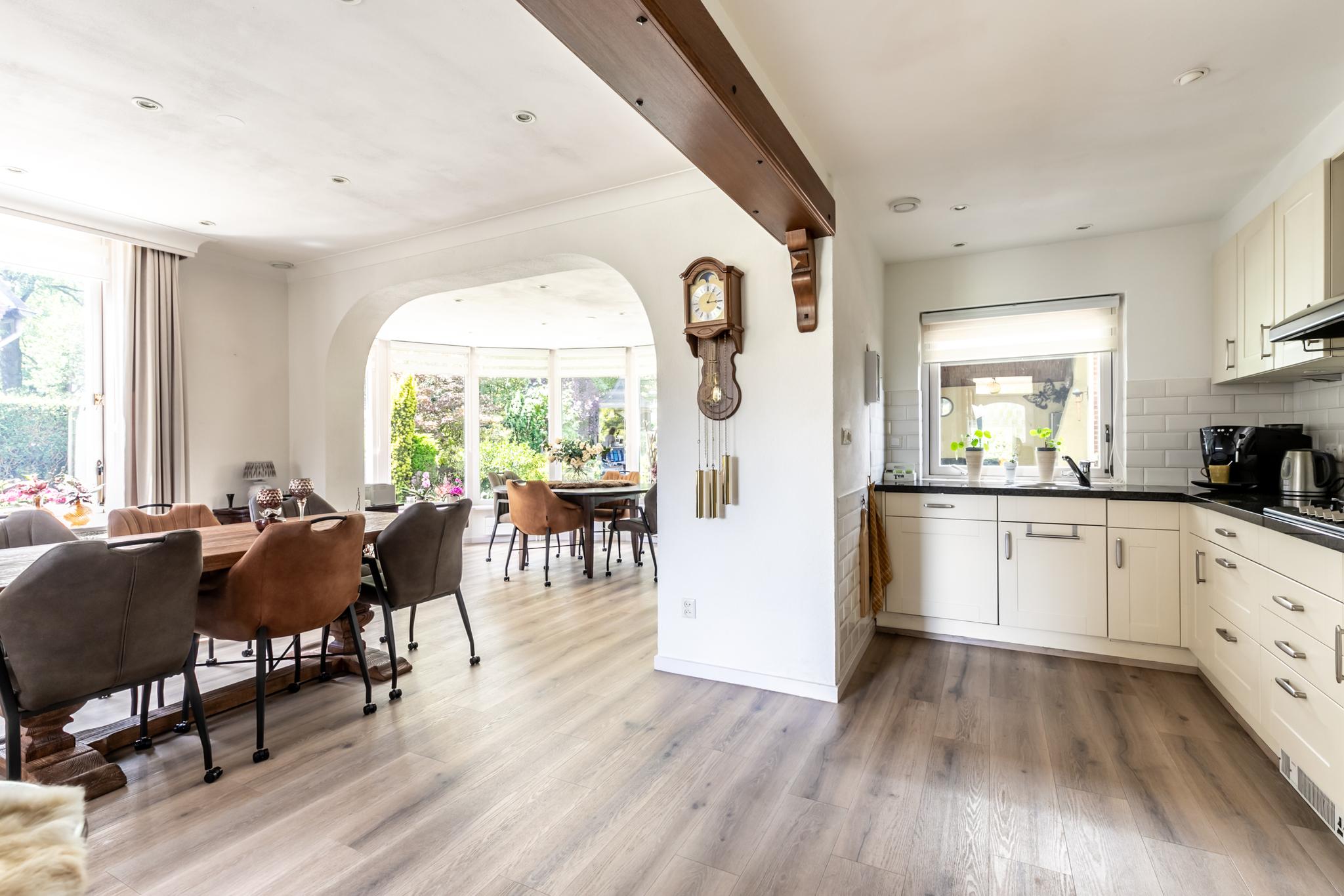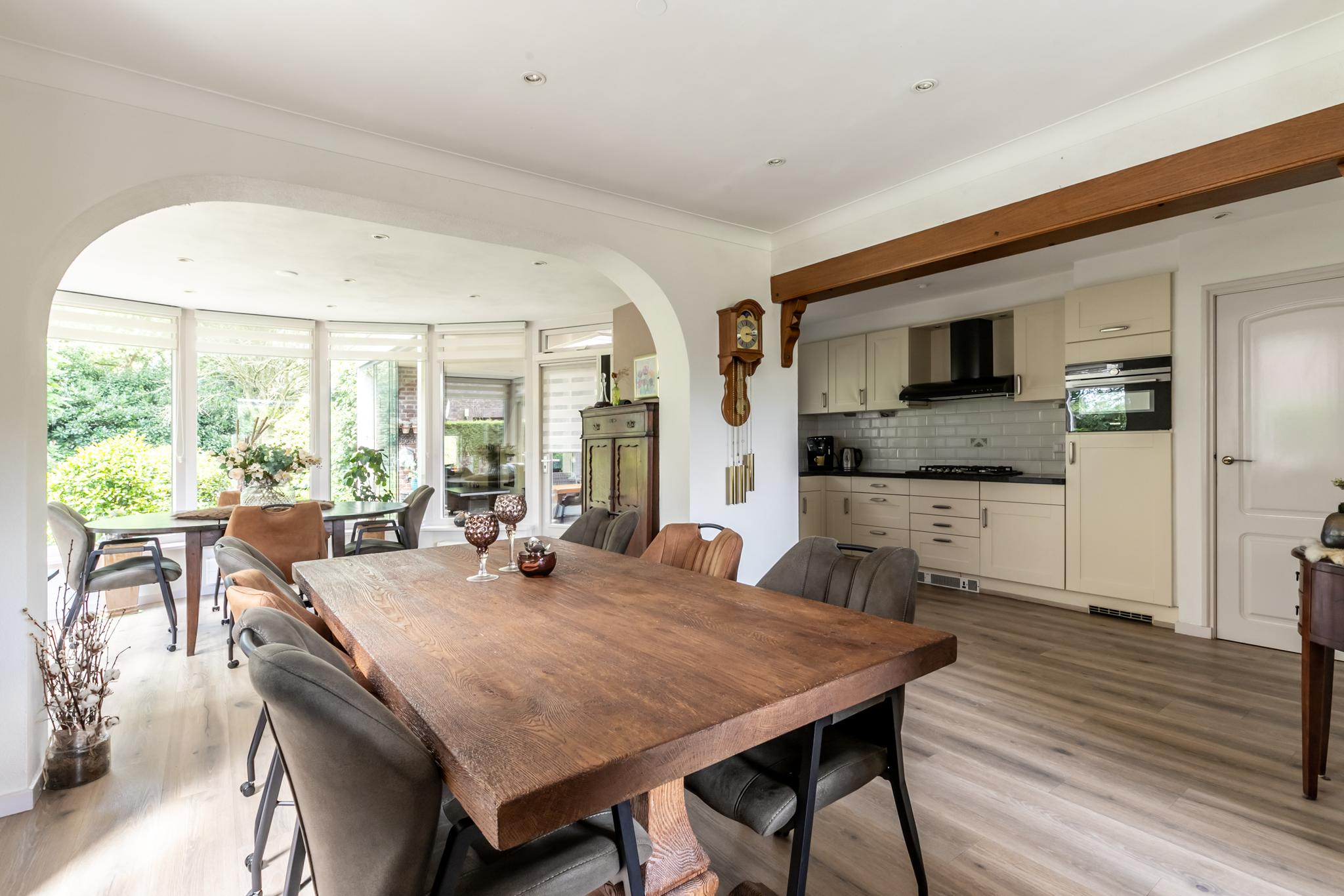 •Woonkamer met open keuken en aangebouwde lichte serre.