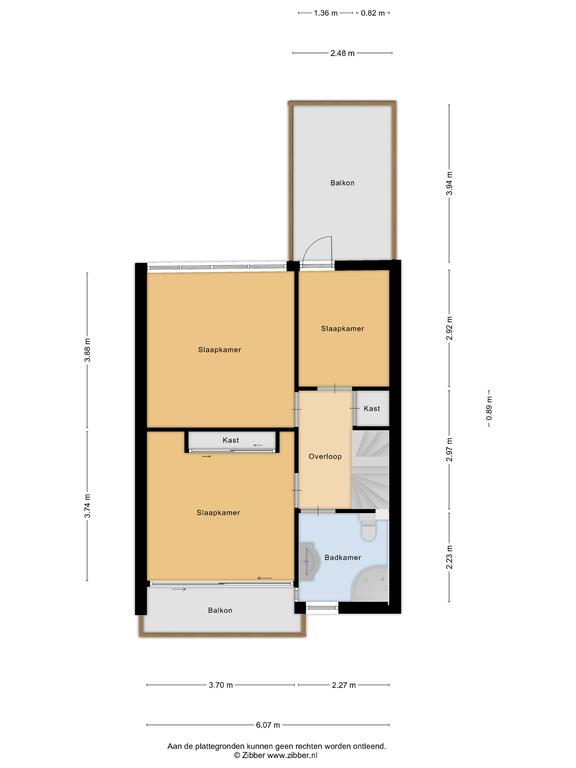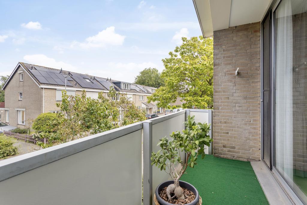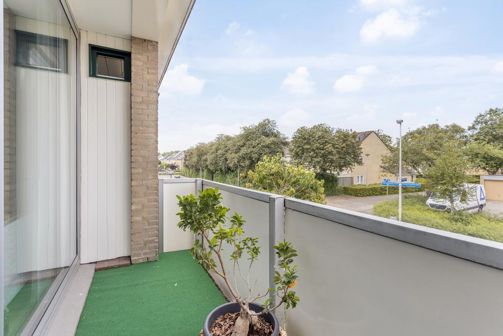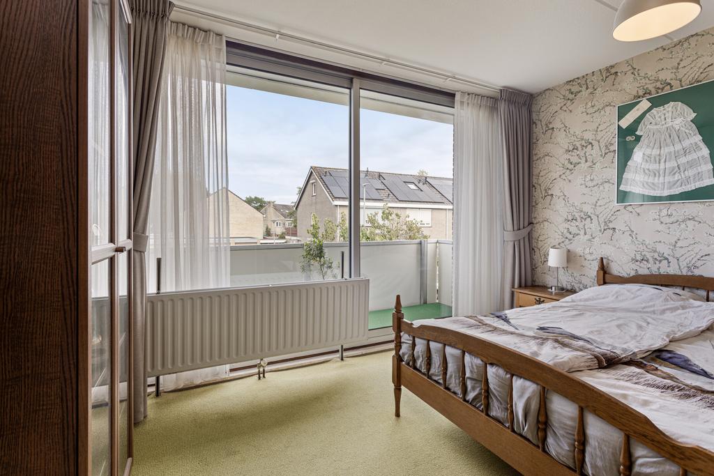 Ruime ouderslaapkamer aan de voorzijde van de woning (14 m²) met een grote schuifpui naar het balkon. Slaapkamer twee en drie zijn eveneens op de eerste verdieping gelegen. Slaapkamer twee is aan de achterzijde van de woning gelegen en is ook ruim te noemen. Slaapkamer drie is aan de achterzijde gelegen en biedt toegang tot het dakterras boven de keuken.