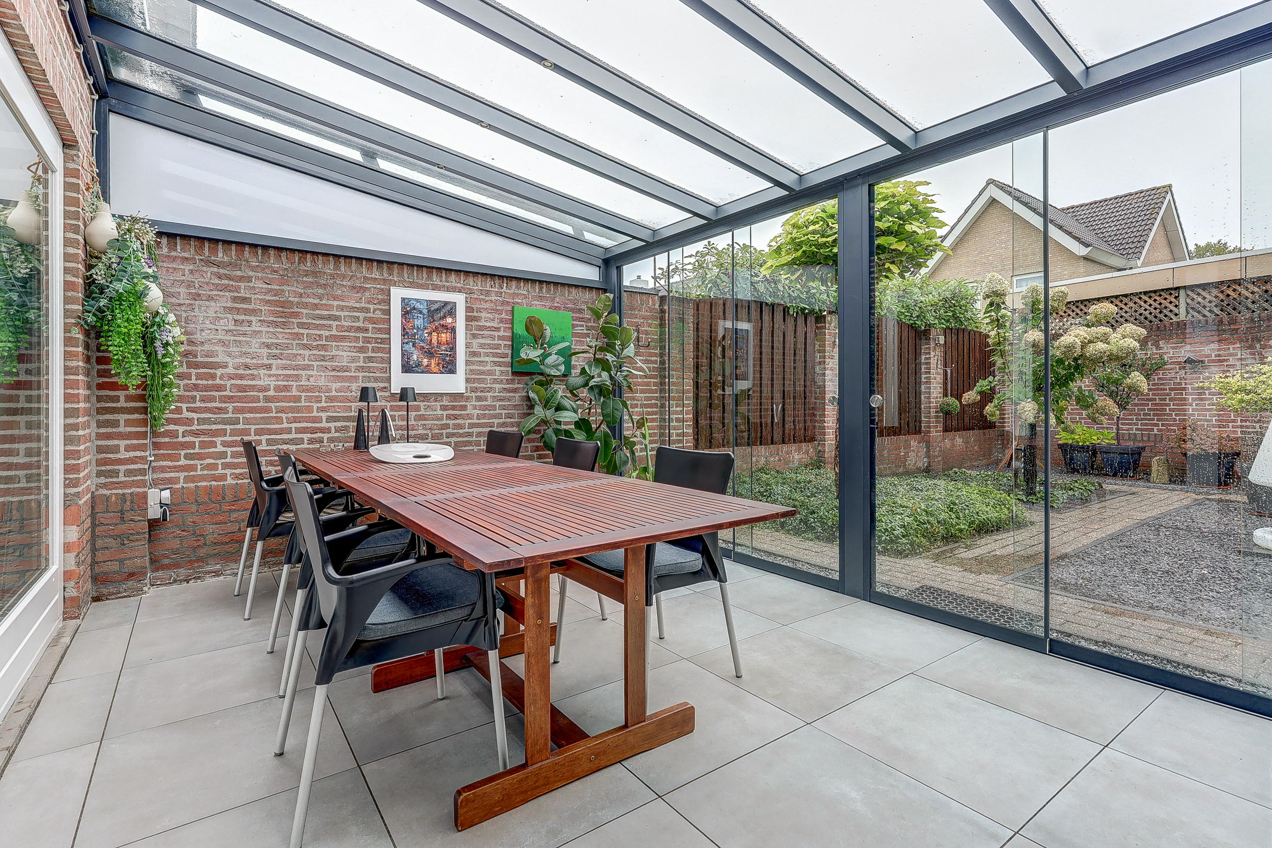 Een absoluut pluspunt van deze woning is de prachtige serre, die direct vanuit de woonkamer toegankelijk is. Deze sfeervolle ruimte vormt een verlengde van zowel de zit- als eetkamer en is daarmee een ideale plek om het hele jaar door van te genieten. De serre is volledig afsluitbaar, voorzien van zonwering in het dak én uitgerust met een warmtelamp, waardoor het ook in de koudere maanden een comfortabele plek blijft. Of je nu wilt ontspannen met een boek, gezellig wilt borrelen met vrienden of juist wilt genieten van het uitzicht op de tuin – in deze extra leefruimte zit je altijd goed.