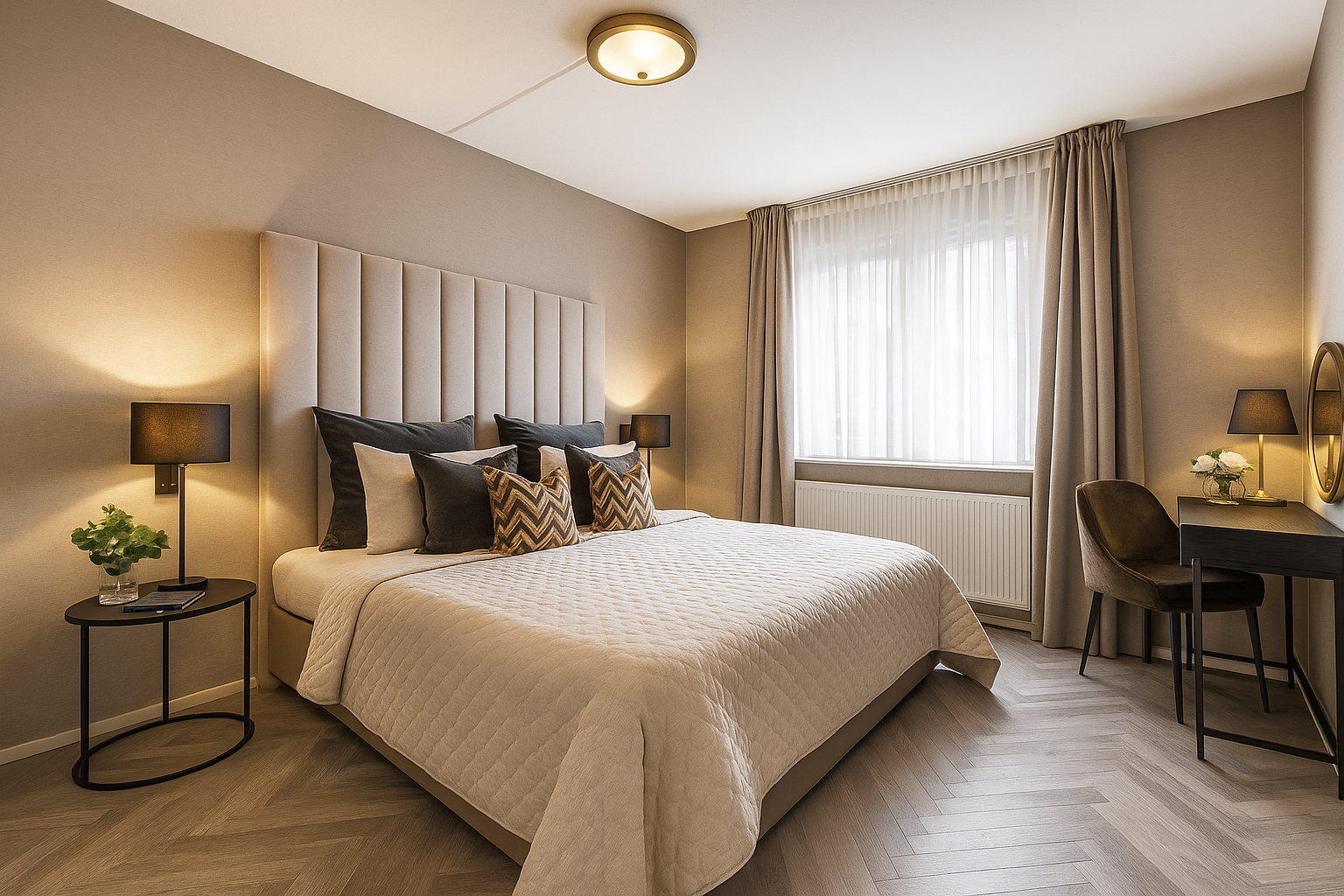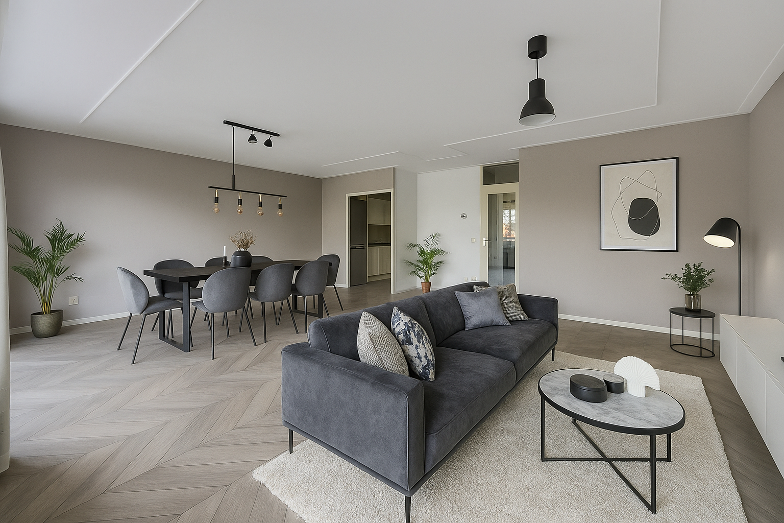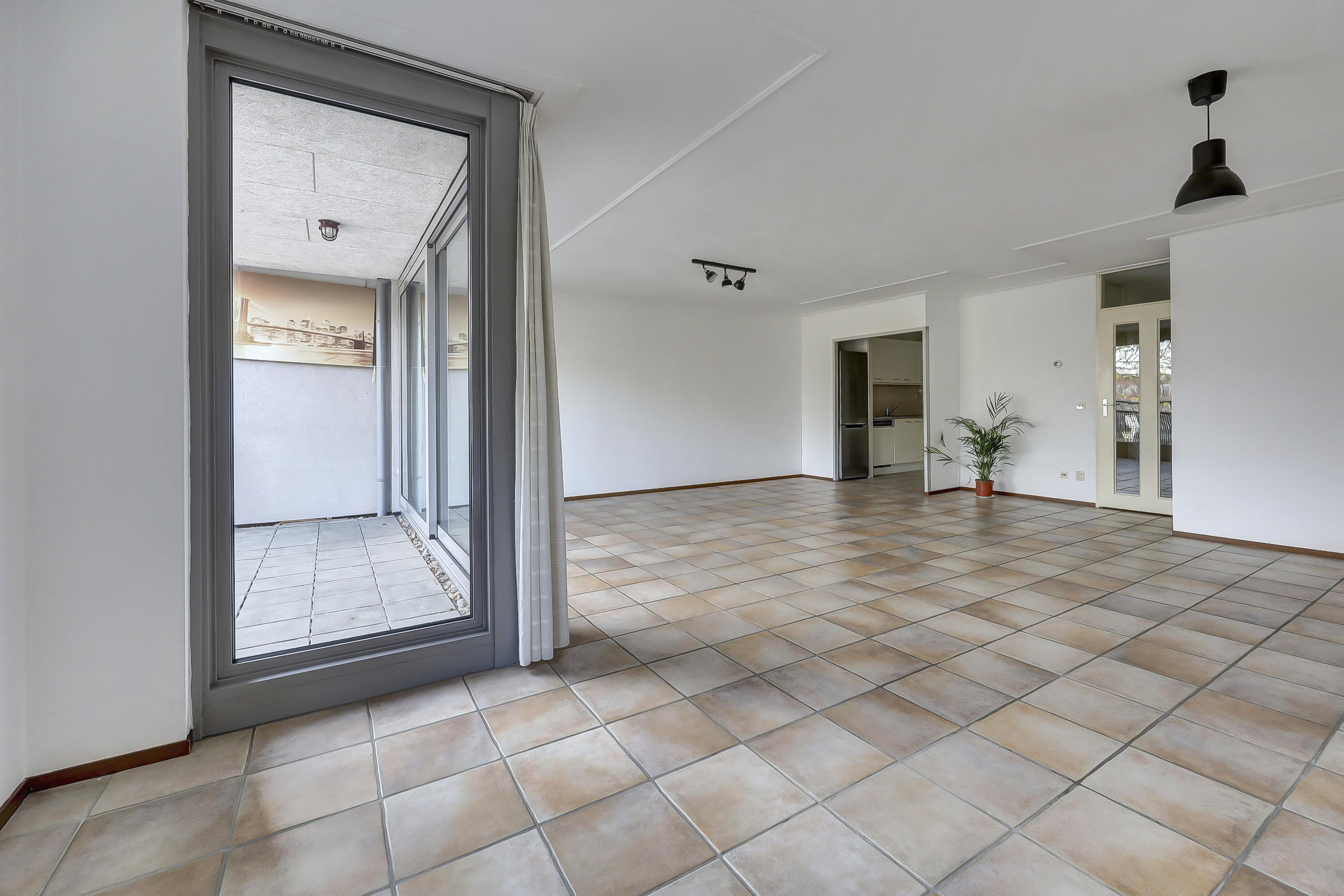 De ruime woonkamer is heerlijk licht door de grote raampartijen en biedt een prettig, open gevoel. De dubbele schuifpuien zorgen bovendien voor een fijne verbinding tussen binnen en buiten. Het appartement is volledig voorzien van dubbele beglazing, wat bijdraagt aan comfort en energiezuinigheid.