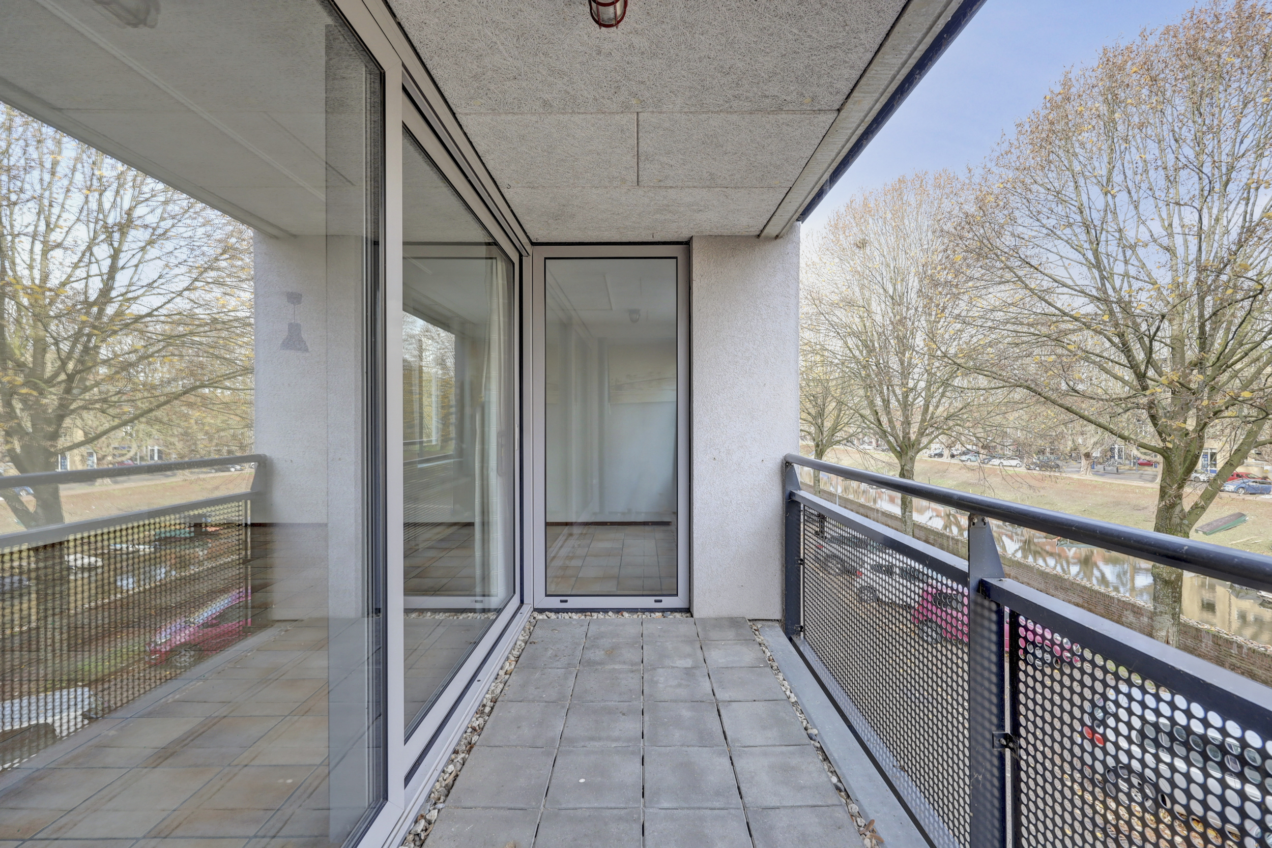Een brede schuifpui geeft toegang tot het royale, overdekte balkon. Vanaf hier geniet u van een leuk uitzicht over het water. Dankzij de gunstige ligging op het zuidwesten kunt u hier volop van de zon genieten, van de middag tot in de avond.