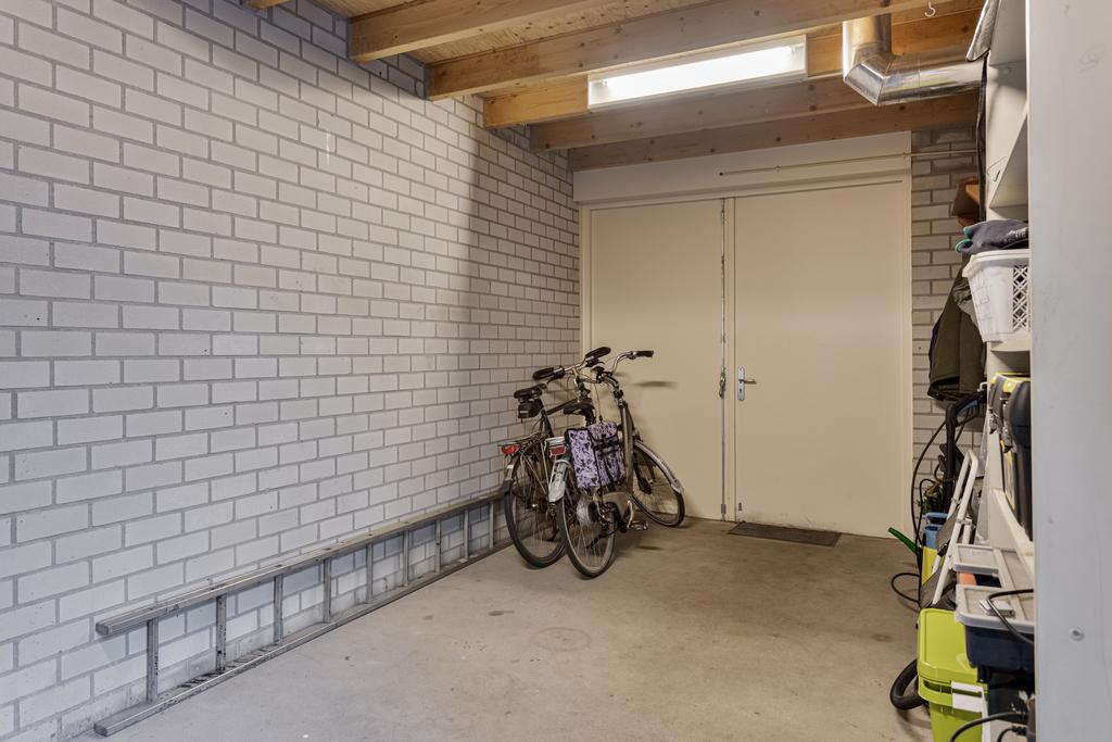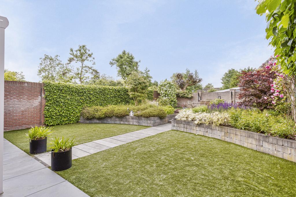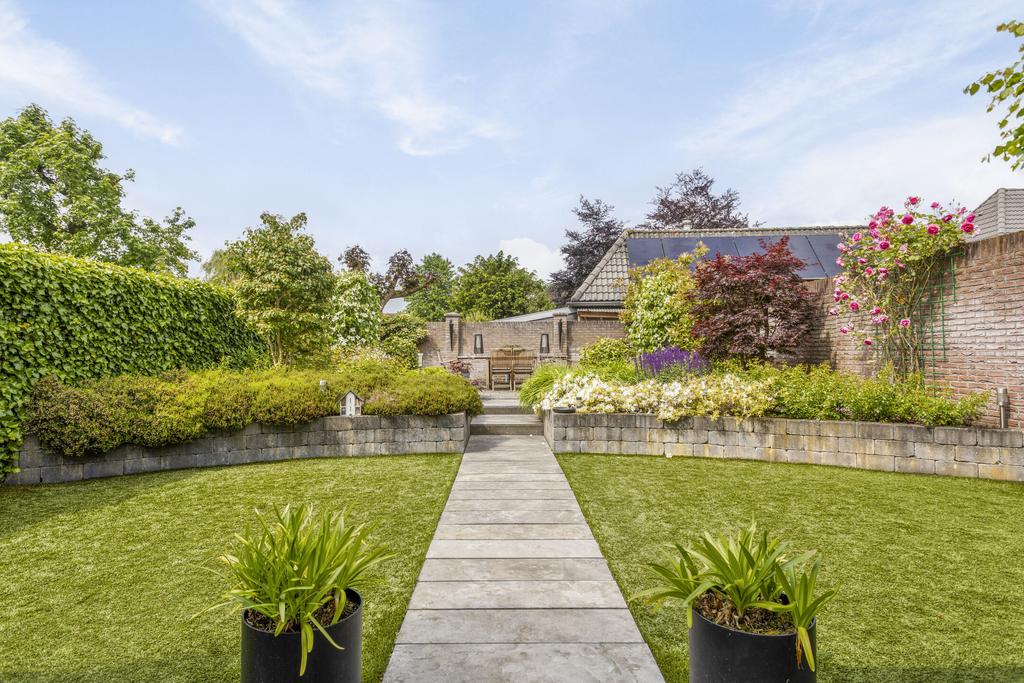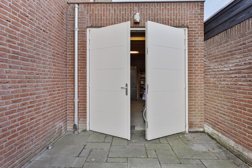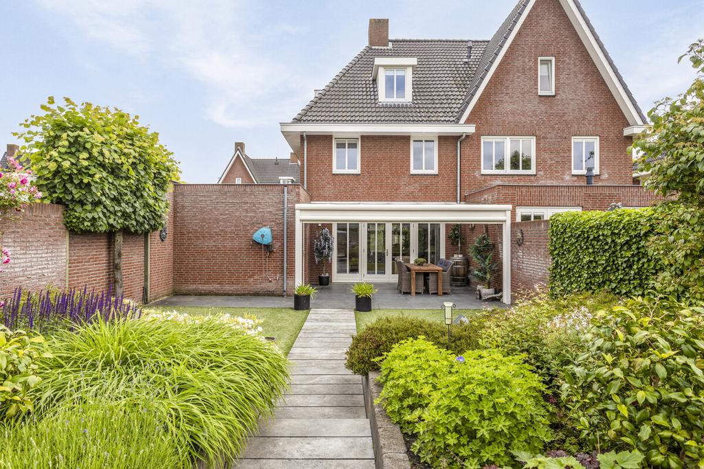 Via de dubbele deuren in de woonkamer komt u in de diepe achtertuin. Hier vindt u een overkapping welke ook te gebruiken is als luxe tuinkamer. De tuin is in westelijke richting gelegen, waardoor u gedurende de dag veel van zonlicht kunt genieten in de tuin. Ook is de woning voorzien van een aangebouwde garage waar plaats is voor één auto. Ook voor een tweede auto is plaats op de oprit voor het huis.