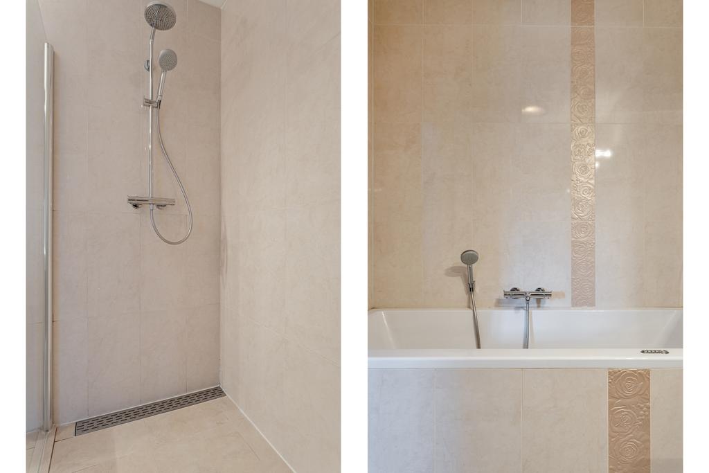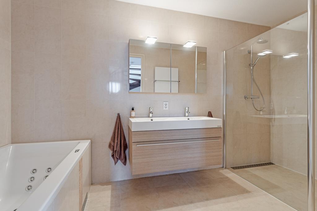 - Dubbele wastafel, wastafelmeubel, inloopdouche en whirlpool