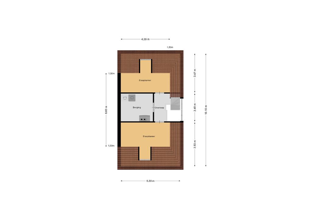 Op de tweede verdieping vindt u nog eens twee ruime slaapkamers, welke ook gemakkelijk als kantoor- of hobbyruimte ingericht kunnen worden. Verder vindt u een berging met opstelplaats voor wasmachine, wasdroger en de CV-ketel.