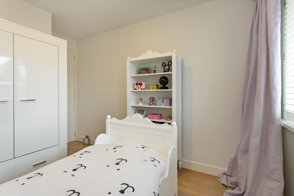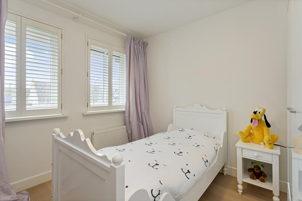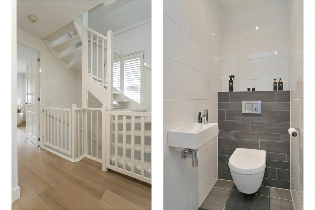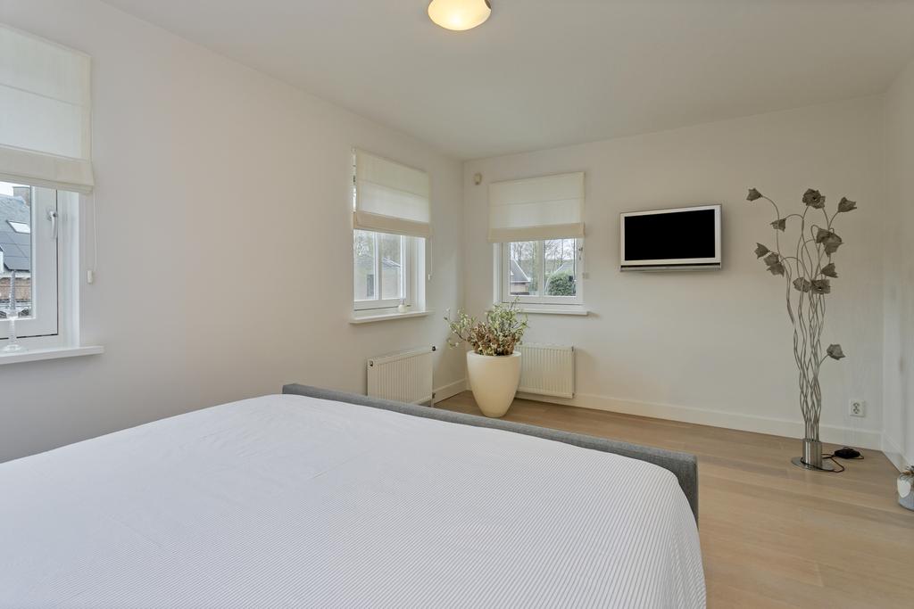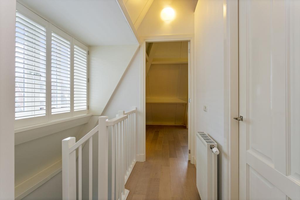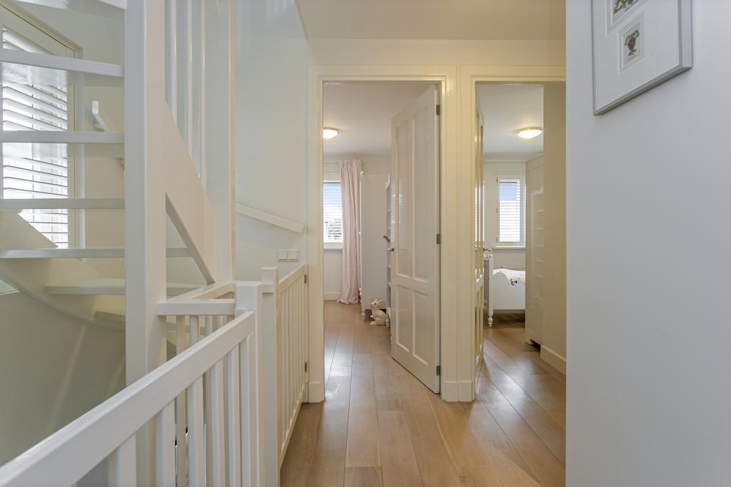 Vanaf de overloop heeft u toegang tot de slaapkamers, de moderne badkamer en separate toiletruimte. De gehele verdieping, met uitzondering van de badkamer, is eenduidig afgewerkt en voorzien van een doorlopende parketvloer (houten toplaag van ca. 1 cm) en strakke stucwerk wanden en plafonds. Diverse raampartijen zijn voorzien van fraaie shutters.