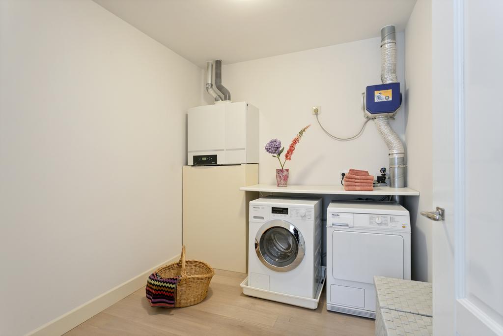 Ook treft u op deze verdieping een ruime was-/bergruimte aan. Hier zijn de aansluitingen van de wasapparatuur, de opstelling van de CV-ketel en de unit van de mechanische ventilatie gesitueerd.