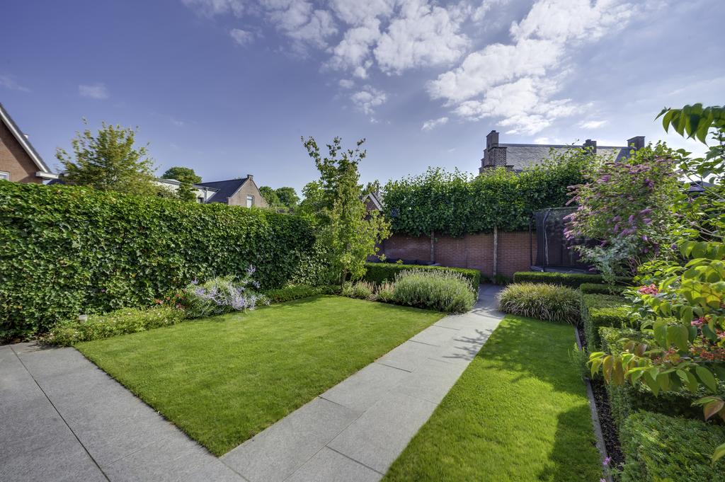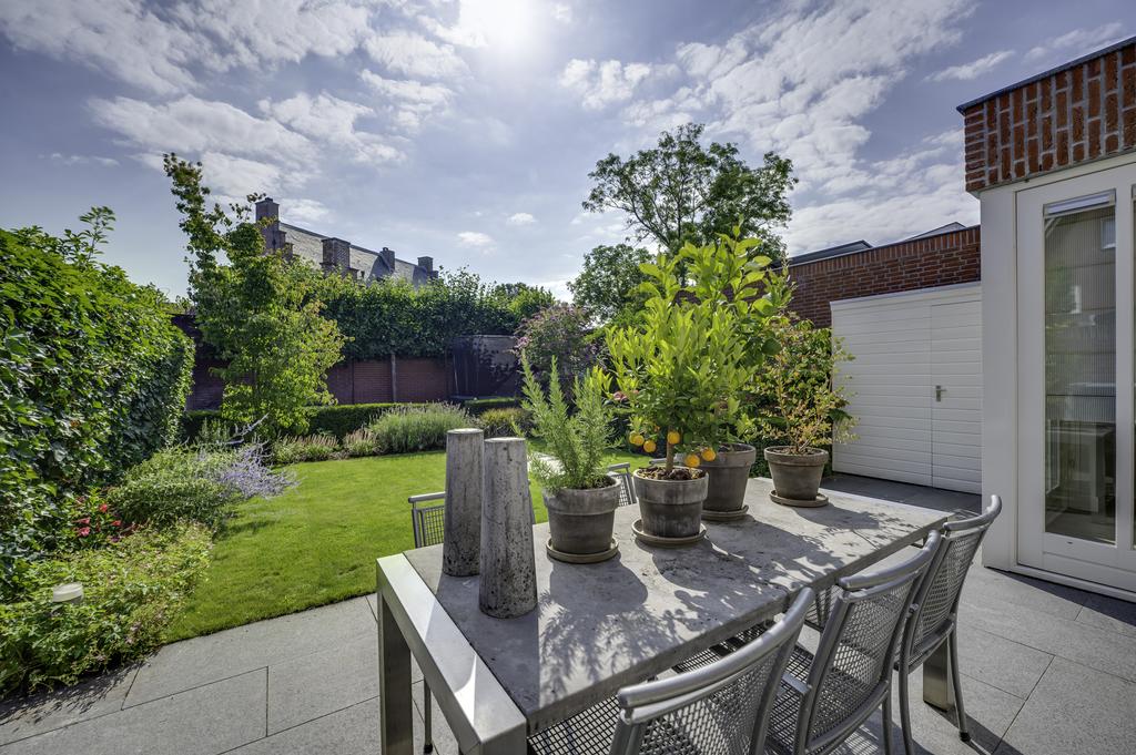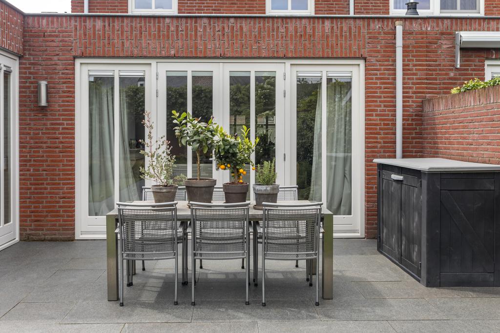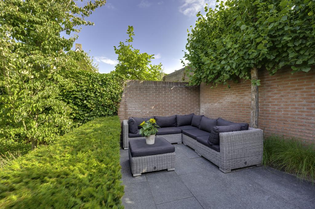 De sfeervol aangelegde, op het oosten georiënteerde en geheel omsloten achtertuin biedt veel privacy. De tuin is ter plaatse van de twee terrassen en het looppad daartussen voorzien van betegeling. Verder is de tuin ingericht met een gazon en een diversiteit aan groenblijvende en kleurrijke beplanting. De praktische berging (v.v. buitenkraan) voor onder meer tuingereedschap maakt het geheel compleet.