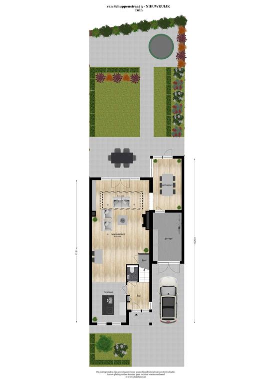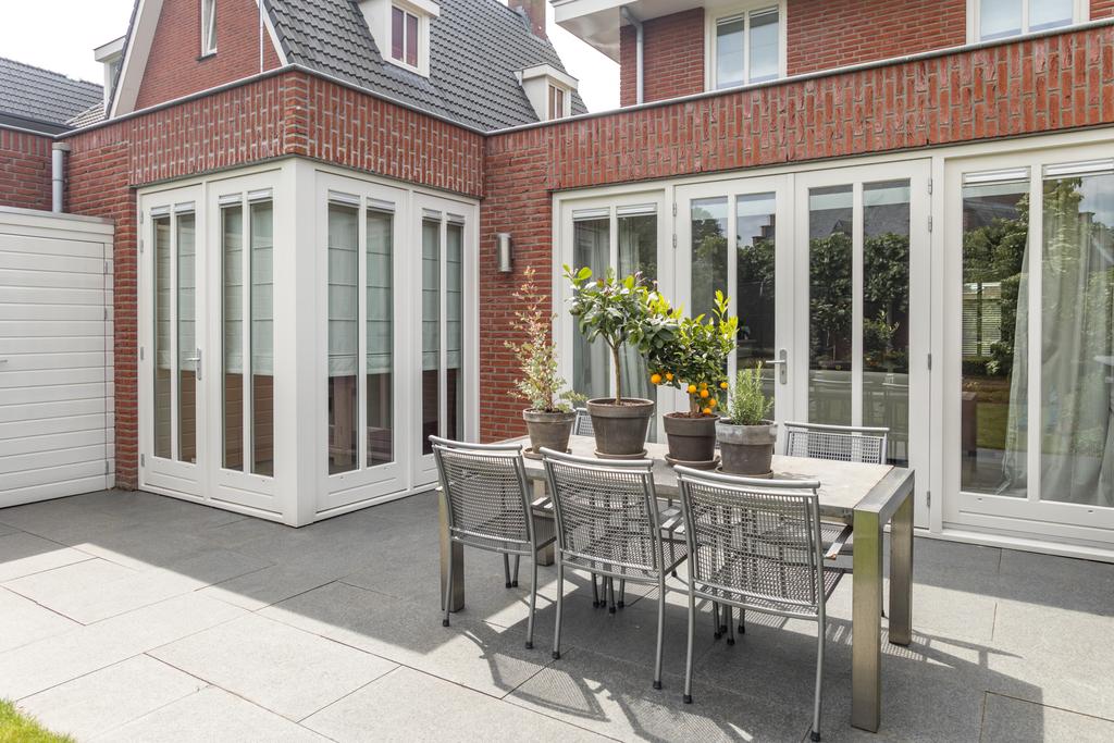 De woning is gelegen aan een autoluwe straat in een kindvriendelijke woonomgeving. Aan de voor- en achterzijde beschikt de woning over een sfeervol aangelegde tuin.De voortuin is ingericht met een oprit voor meer auto’s en een perk met groenblijvende en kleurrijke planten. Het looppad geeft toegang tot de voordeur. Vanuit de oprit is de garage / berging toegankelijk. Ook deze is, net als de rest van de woning, strak afgewerkt en beschikt over stucwerk wanden en plafonds, een betegelde vloer, openslaande deuren richting de oprit, elektra en een buitenkraan.