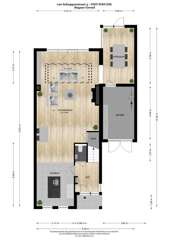 Via de onderhoudsvriendelijk aangelegde voortuin met royale oprit heeft u toegang tot de entree met aangrenzend de hal. De hal beschikt over een meterkast (11 groepen, aardlek en slimme meter) en toiletruimte met wandcloset, fonteintje en mechanische ventilatie. Net als de overige ruimten in de woning is de hal strak afgewerkt. Zo is de gehele begane grond, met uitzondering van de garage / berging, voorzien van een Portugeese natuursteenvloer in combinatie met vloerverwarming. De wanden en plafonds in de woning zijn voorzien van strak stucwerk en ter plaatse van de begane grond hebben de plafonds sierlijsten.