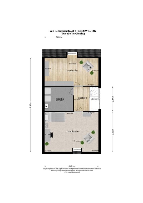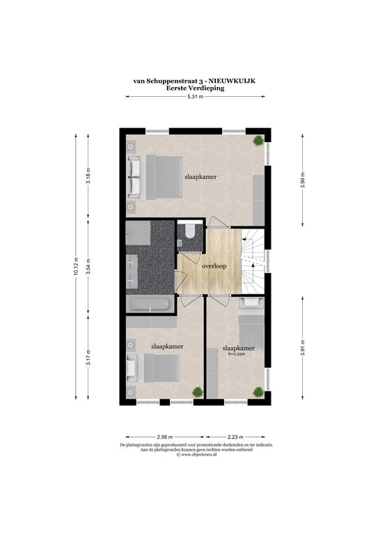 Op de verdieping treft u drie slaapkamers aan. Zeer prettige ruimtes waarvan twee slaapkamers aan de voorzijde zijn gesitueerd. De hoofdslaapkamer is aan de achterzijde over de gehele breedte van de woning gelegen.