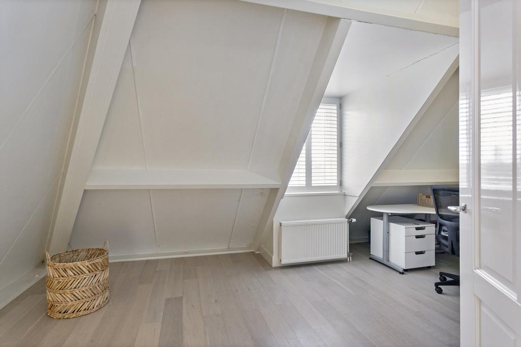 Vanuit de overloop is de vliering toegankelijk. Aan weerszijde van de overloop is een slaapkamer gesitueerd. Een van deze kamers is thans ingericht als kastenkamer, de andere als kantoor-/werkruimte. Beide kamers zijn ruim van opzet en keurig afgewerkt met stucwerk wanden en een doorlopende parketvloer.