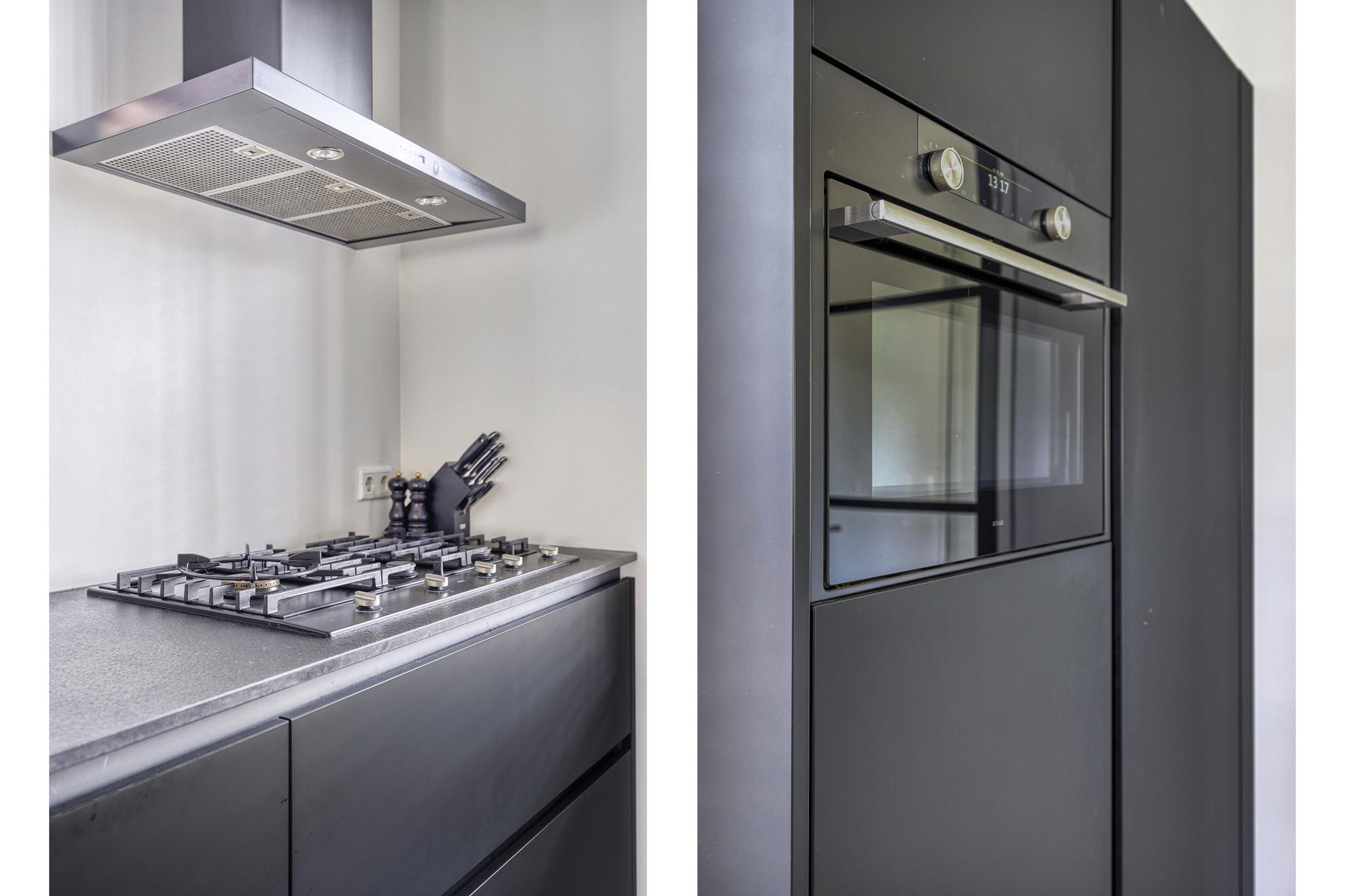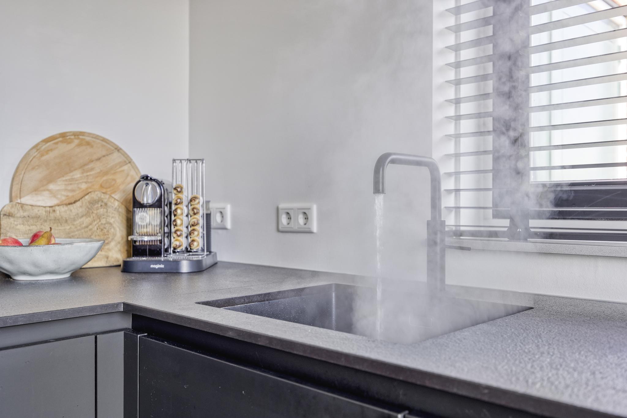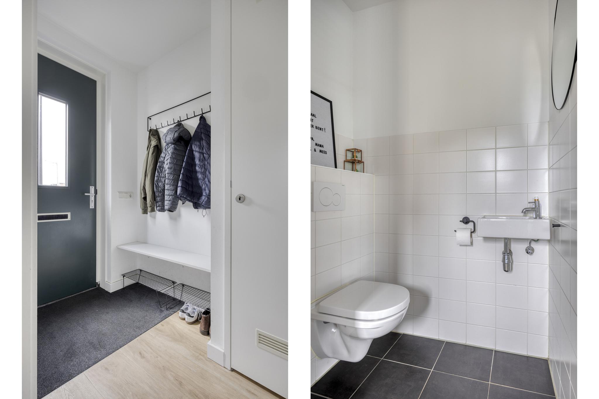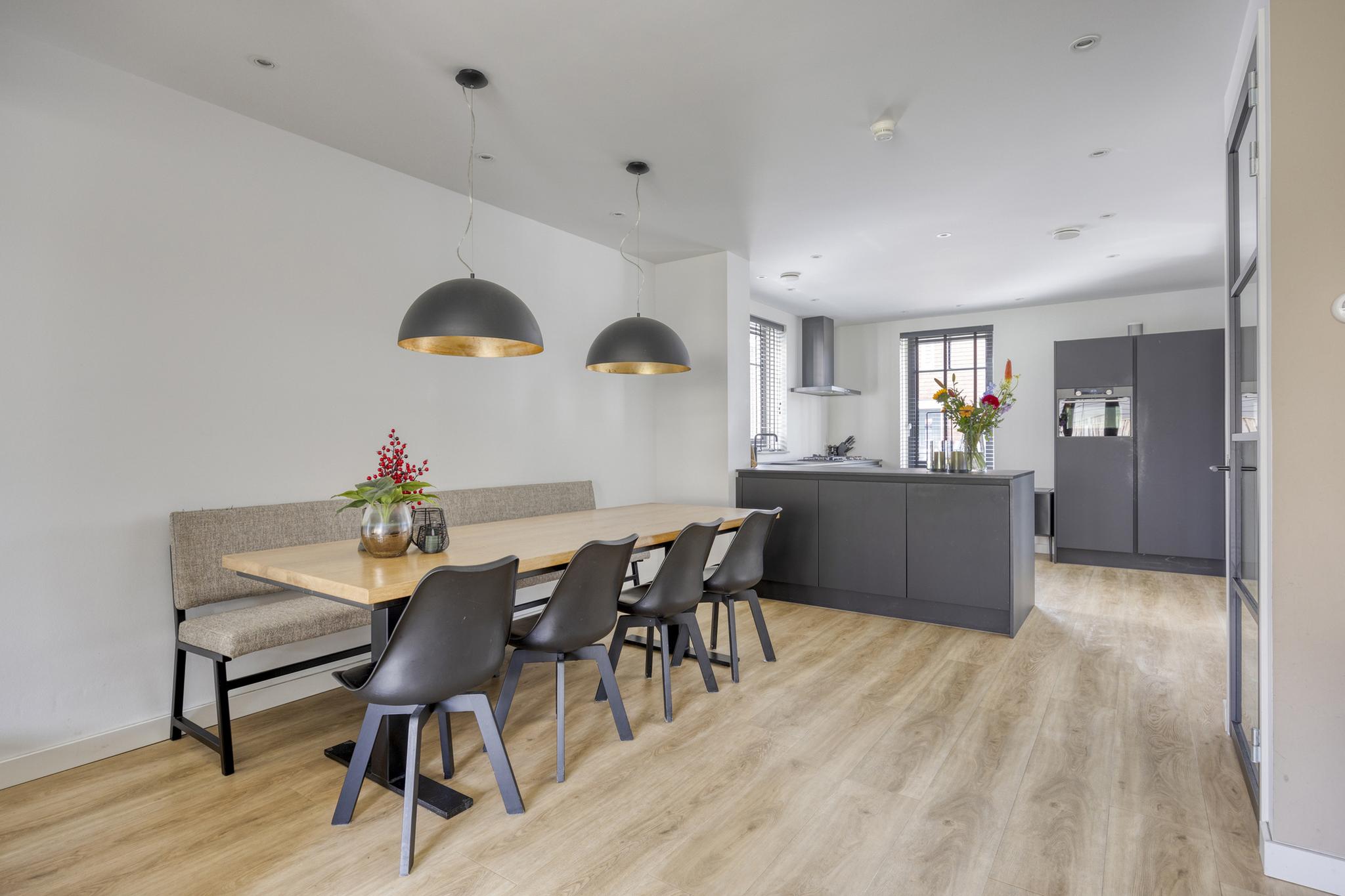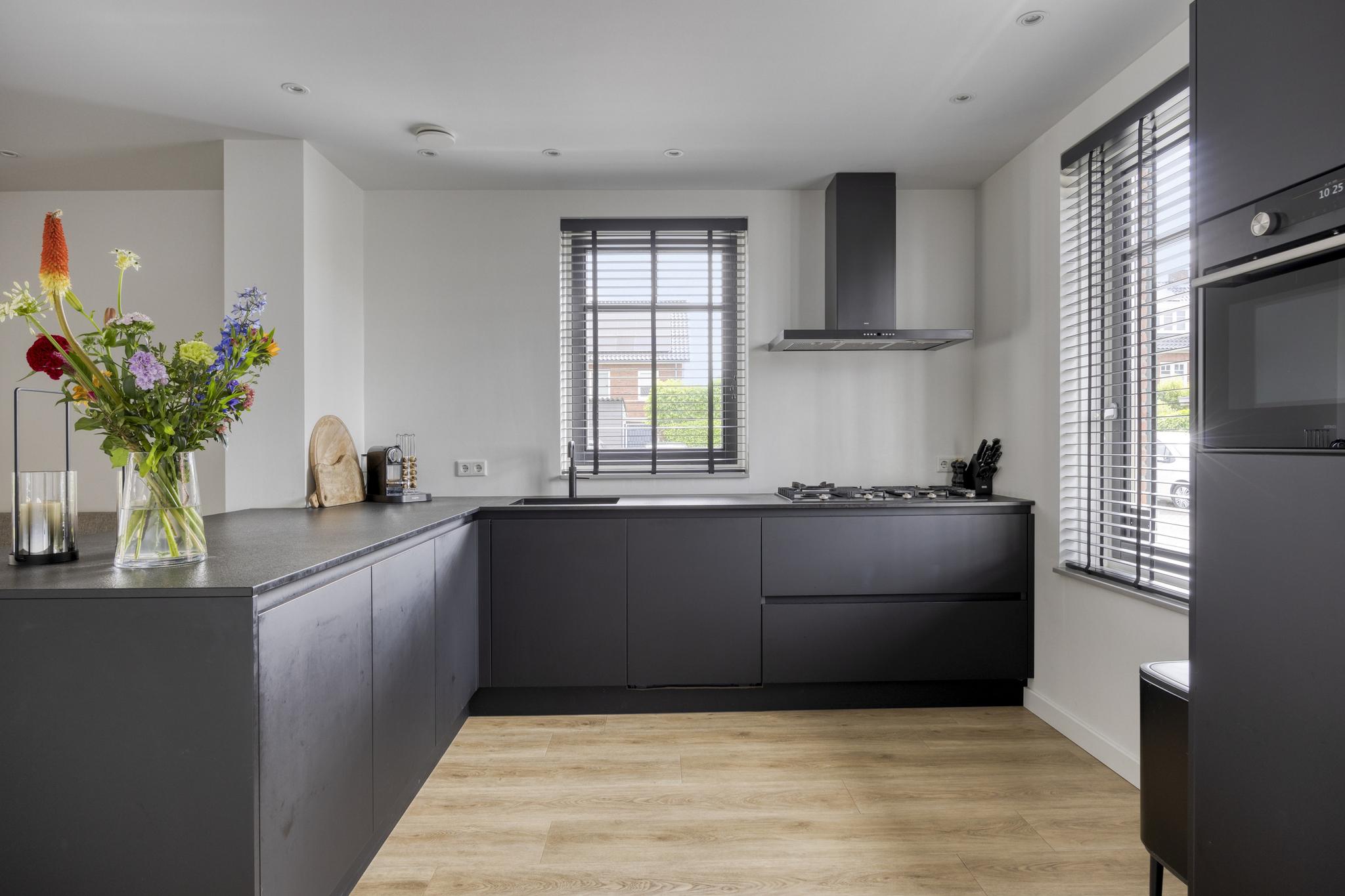 Parkeer je auto op de ruime oprit en betreed de woning via de voordeur. Je komt binnen in de entreehal met toegang tot de meterkast, het toilet en de keuken. Opvallend zijn de luxe houten binnendeuren, die deze verdieping een stijlvolle uitstraling geven. Aan de voorzijde van de woning bevindt zich de moderne open keuken, uitgerust met onder meer een nieuwe vaatwasser uit 2024, een combi-oven, koelkast, vriezer, Quooker en een gaskookplaat. De keuken loopt door de eetkamer vloeiend over in de woonkamer aan de achterzijde van het huis. Hier is voldoende ruimte voor een gezellige zithoek en een ruime eettafel. De gashaard functioneert als roomdivider en zorgt voor extra sfeer, zeker in de wintermaanden. Dankzij de dubbele tuindeuren heb je direct toegang tot de zonnige achtertuin. De woonkamer beschikt ook over een handige trapkast, toegang naar de trap naar de eerste verdieping en naar de multifunctionele ruimte welke weer toegang geeft naar de inpandig te bereiken garage.
