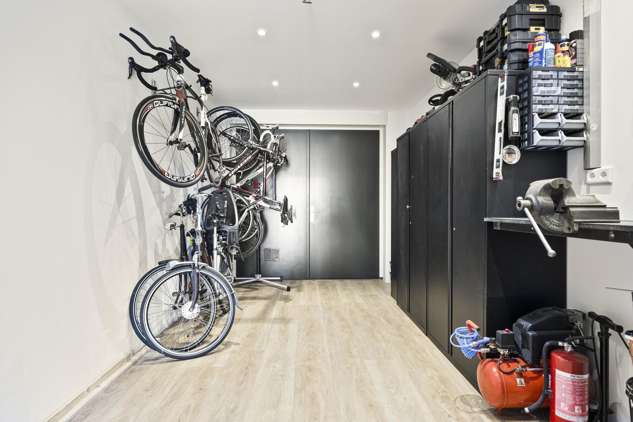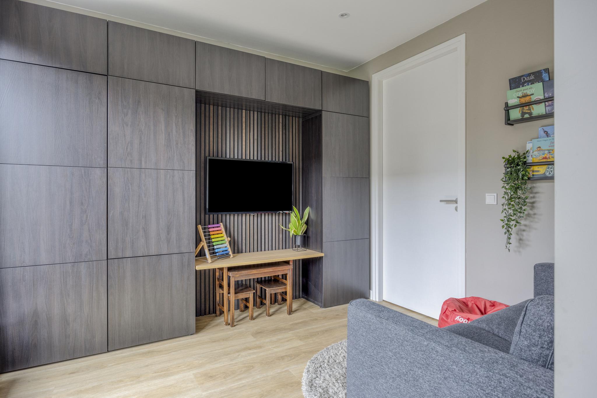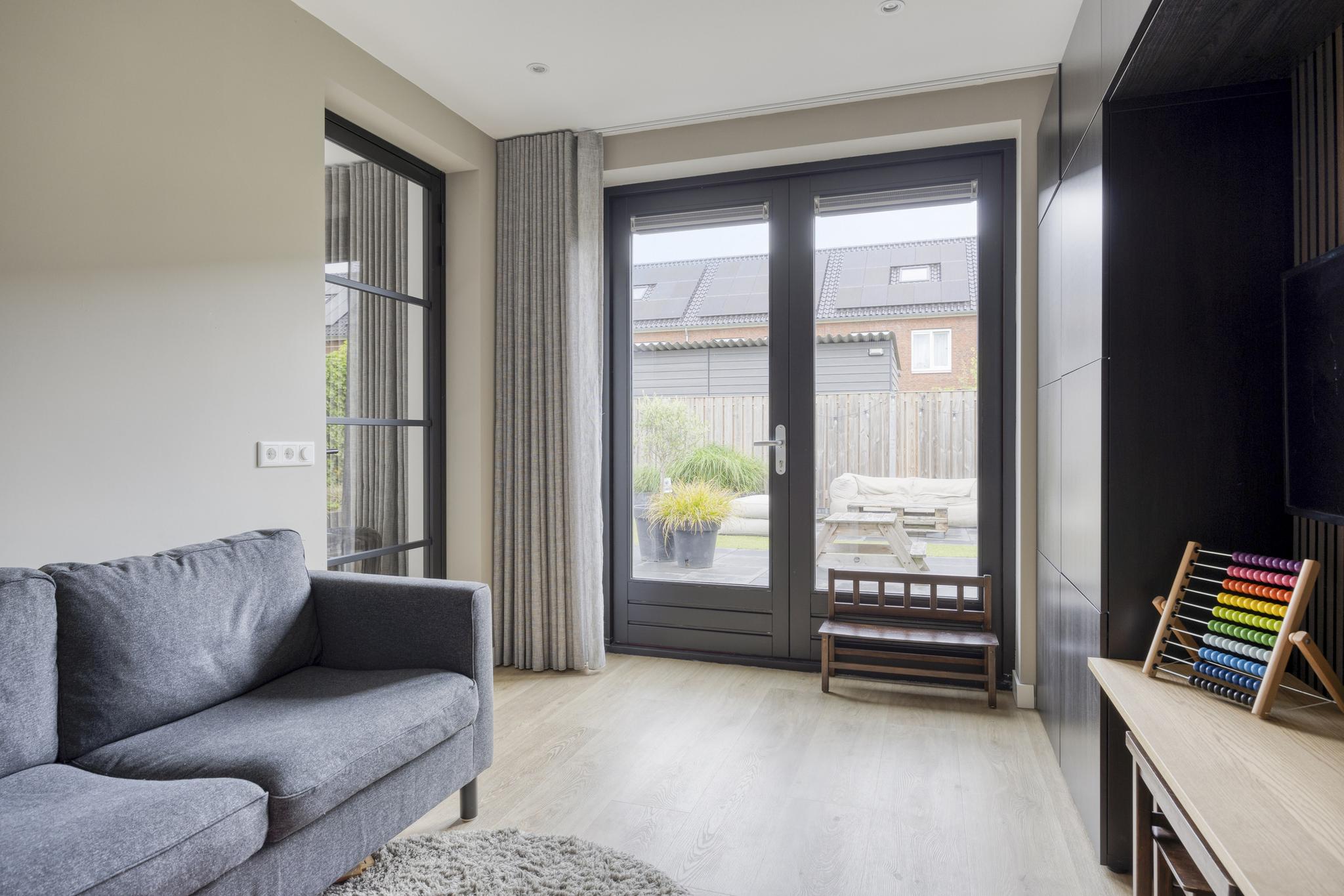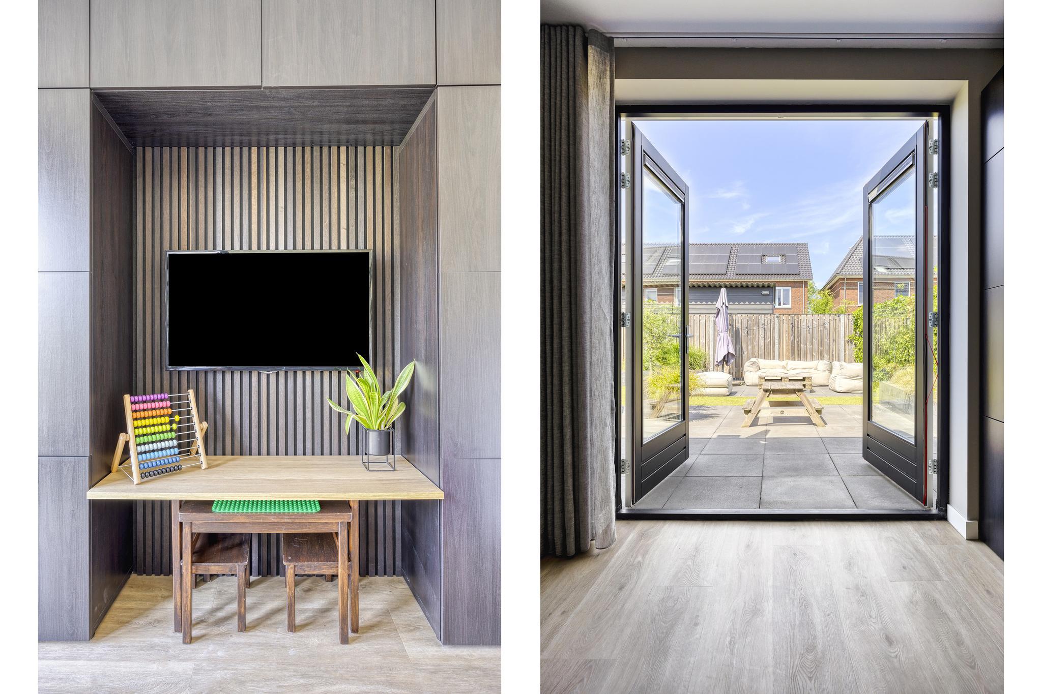 De garage is in 2024 uitgebouwd en heeft een multifunctionele functie. Aan de achterzijde is een ruimte gecreëerd, ideaal als speelkamer, kantoor of hobbyruimte. Ook vanuit hier geven dubbele tuindeuren toegang tot de achtertuin, wat zorgt voor veel lichtinval.