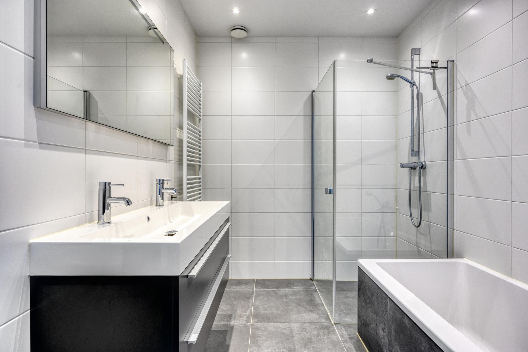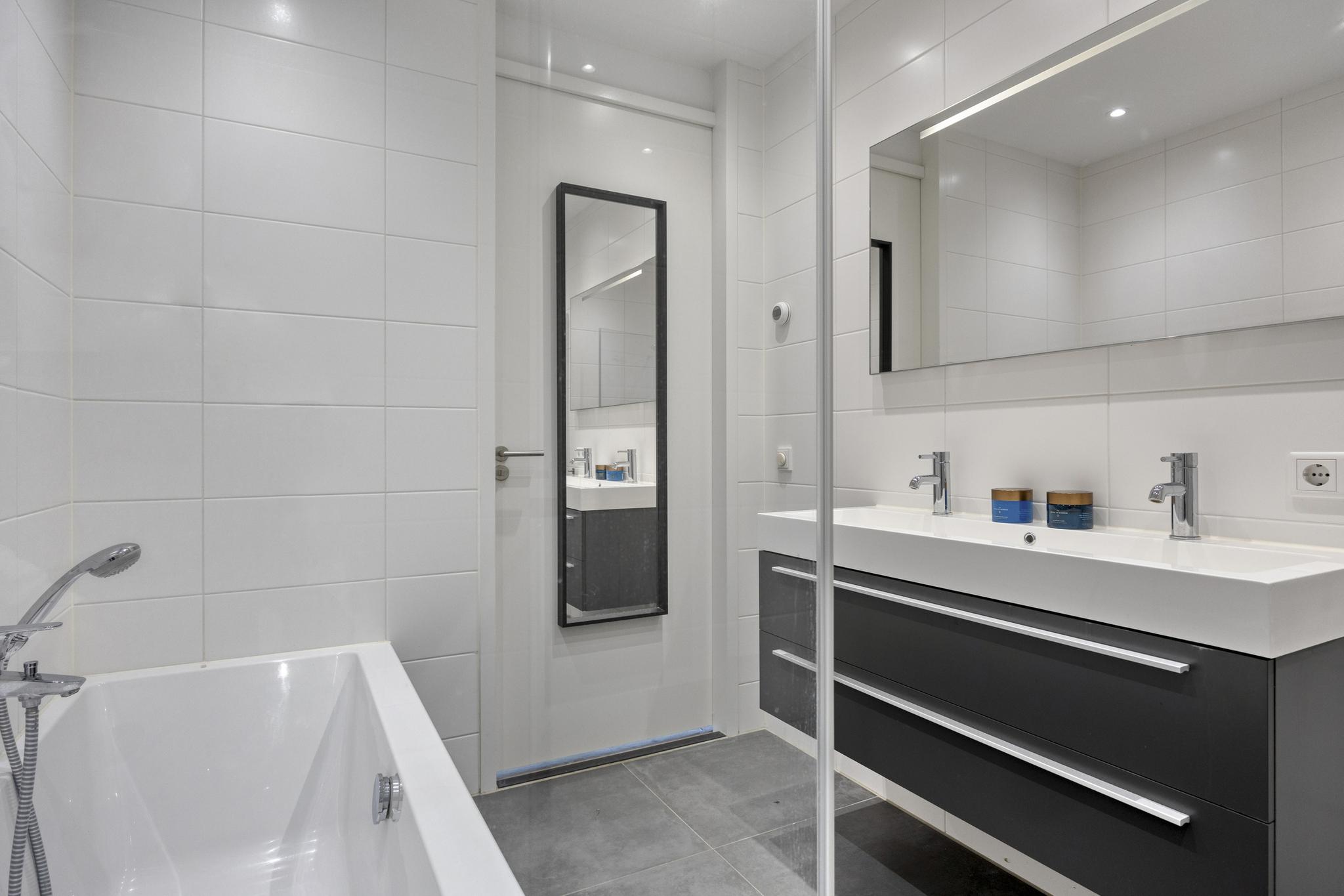 - Ligbad, douche, dubbele wastafel en wastafelmeubel