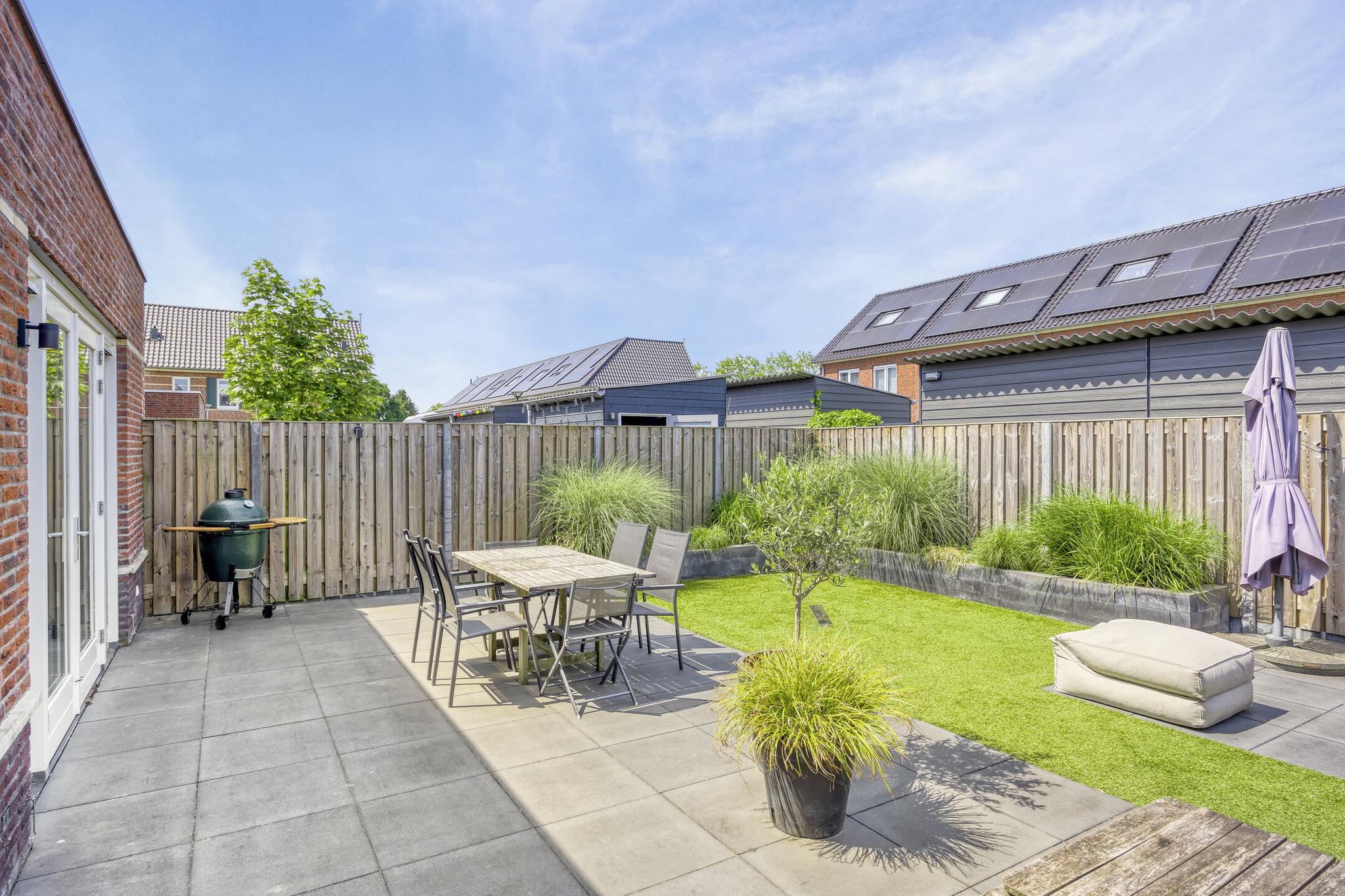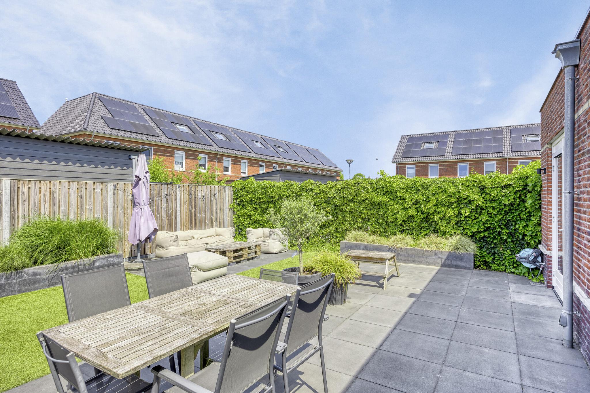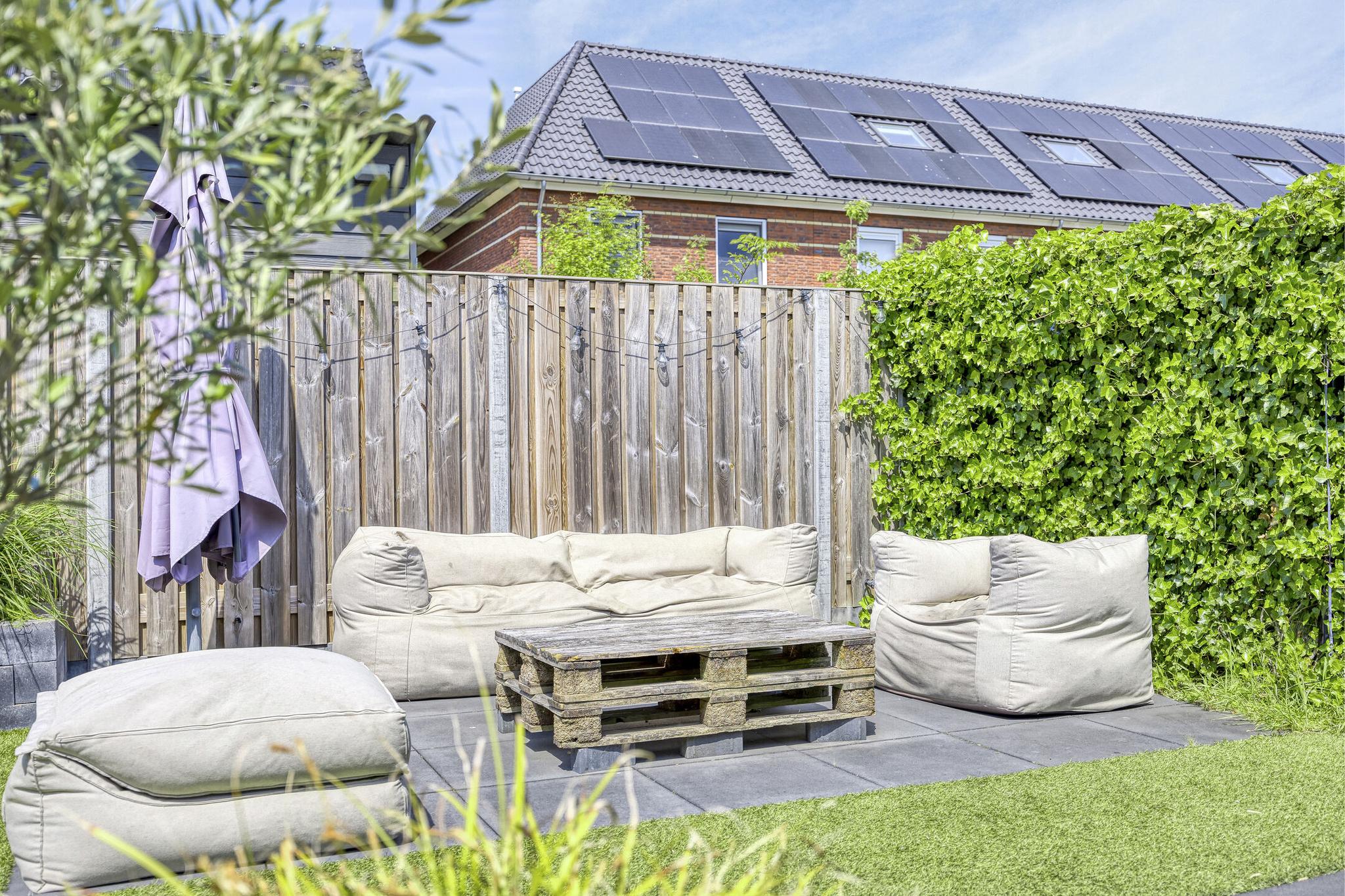 De achtertuin is gelegen op het noord-westen, maar dankzij de diepte van de tuin heb je de hele dag zon. Er is volop ruimte voor meerdere zithoeken. Denk aan een loungeset, een grote tuintafel of een barbecueplek. De tuin is netjes onderhouden en biedt een groene, sfeervolle uitstraling. Dankzij de dubbele tuindeuren vanuit zowel de woonkamer als de multifunctionele ruimte kun je de tuin op meerdere manieren betreden. De buitenverlichting zorgt ervoor dat je ook in de avonduren van je tuin kunt genieten. Een heerlijke plek om tot rust te komen, te tuinieren of gezellig samen te zijn.
