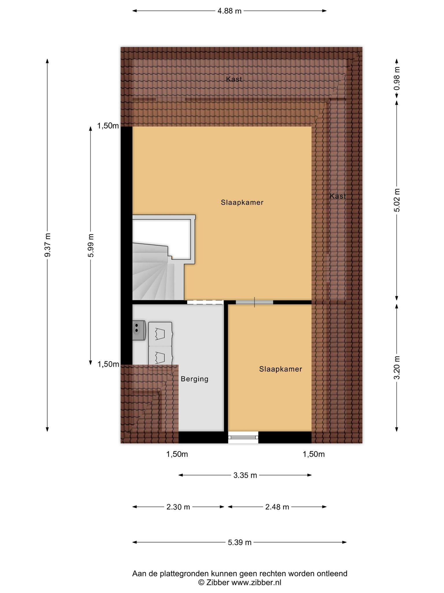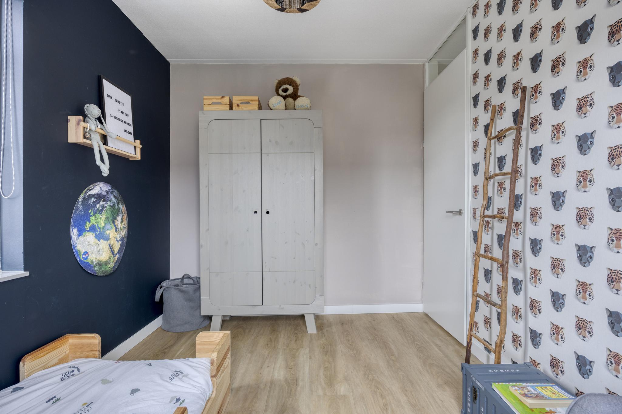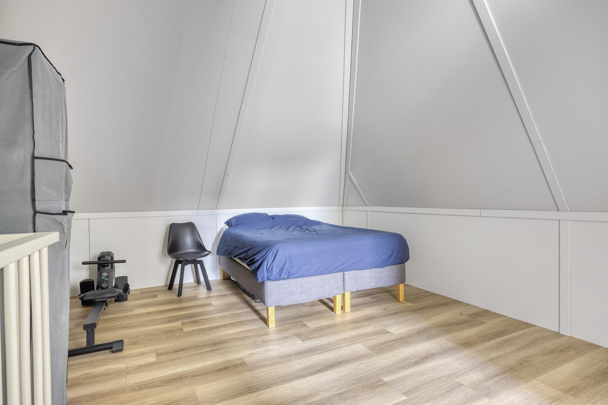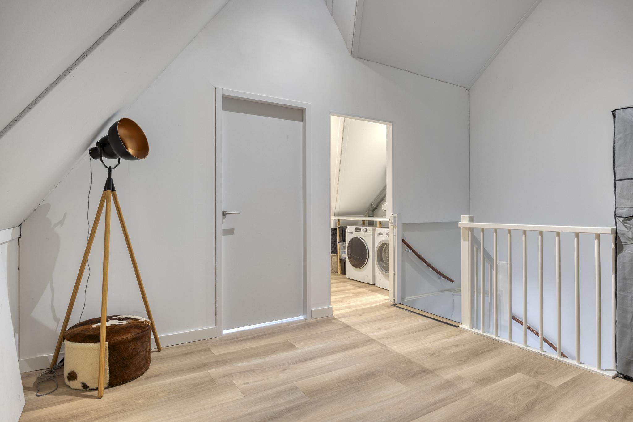 De tweede verdieping bereik je via een vaste trap. Hier kom je terecht in een royale ruimte die dienst kan doen als vierde slaapkamer. Er is voldoende ruimte voor een tweepersoonsbed, een bureau of zelfs een zithoek. In de knieschotten is slimme bergruimte gecreëerd voor spullen die je niet dagelijks gebruikt. Daarnaast zijn er nog twee aparte kamers op deze verdieping aanwezig. Eén daarvan is momenteel ingericht als kantoorruimte, met natuurlijk daglicht via een raamkozijn. De andere kamer doet dienst als technische ruimte. Hier vind je de opstelplaatsen van de cv-ketel, wasmachine en wasdroger. Kortom: een multifunctionele verdieping met volop mogelijkheden.