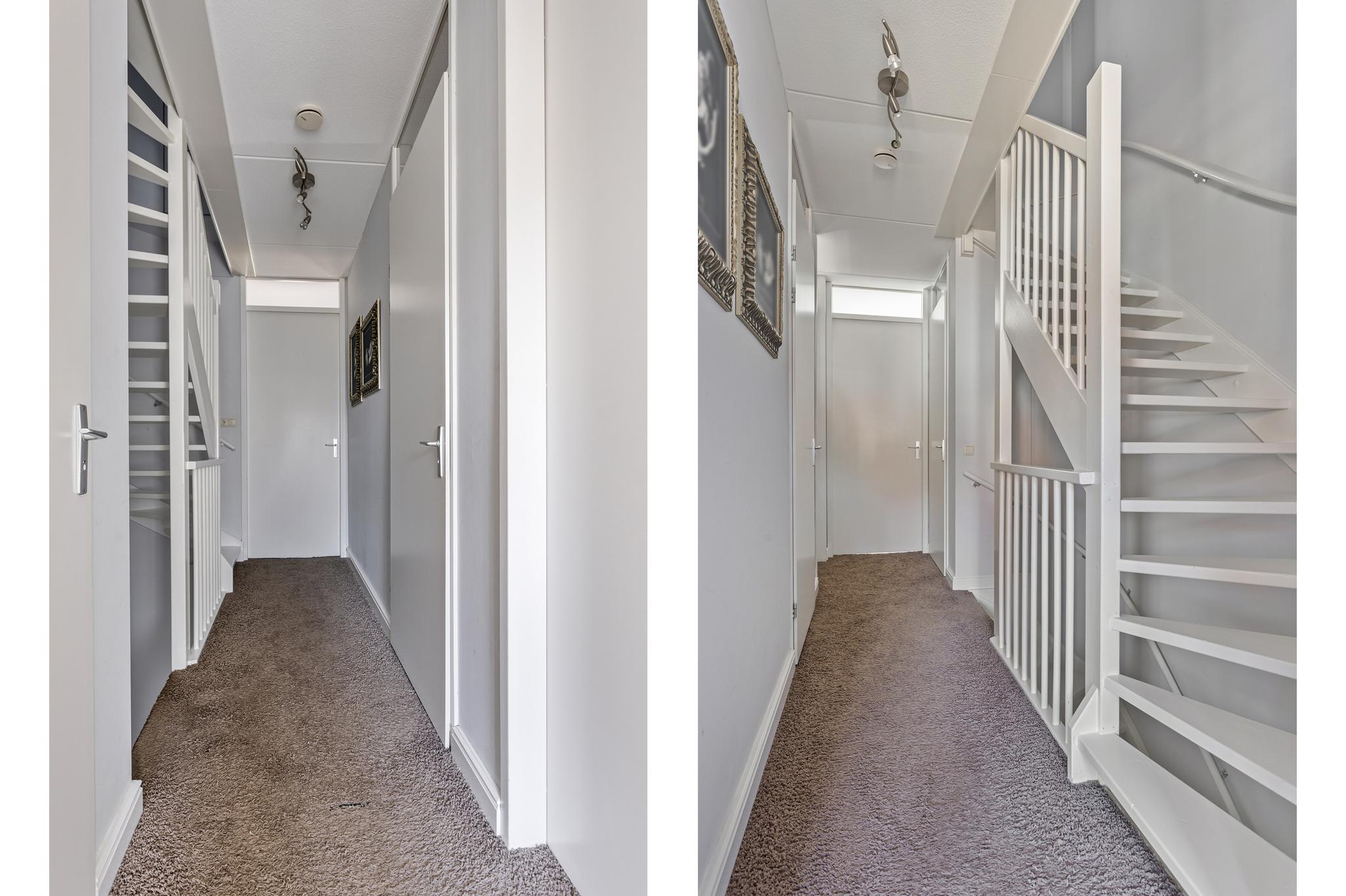 De overloop biedt toegang tot 2 ruime slaapkamers en een waskamer (voorheen slaapkamer), de toilet en de badkamer. De slaapkamers zijn ruim van opzet en de waskamer is een extra luxe. De ouderslaapkamer is voorzien van een inbouwkast. De nette badkamer is uitgerust met een wastafelmeubel, inloopdouche en een groot ligbad. Het toilet is separaat met hangend closet.