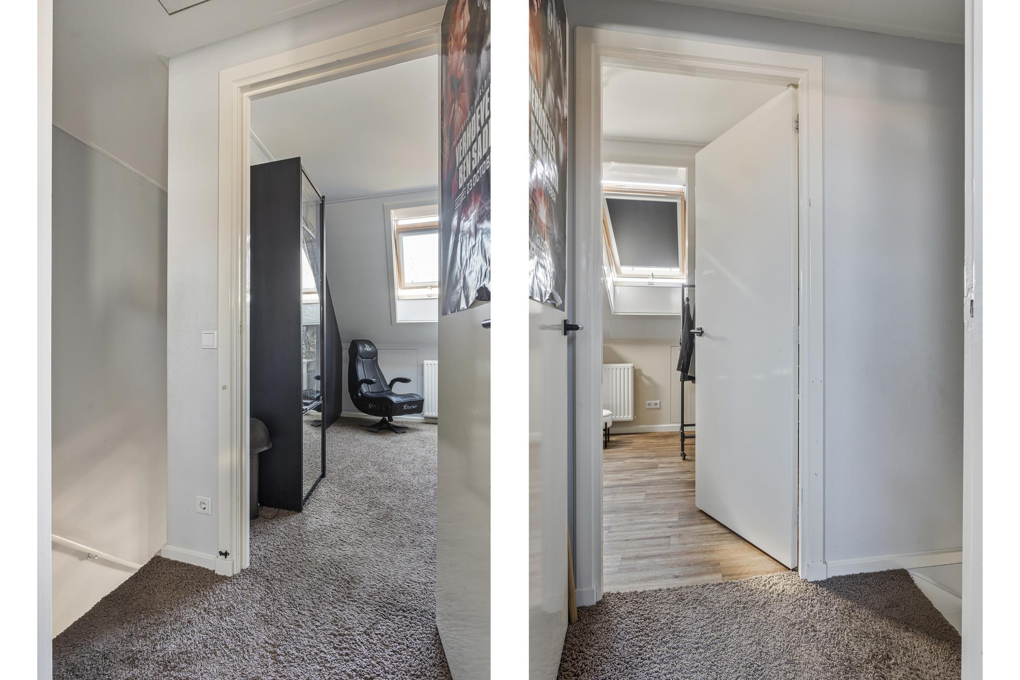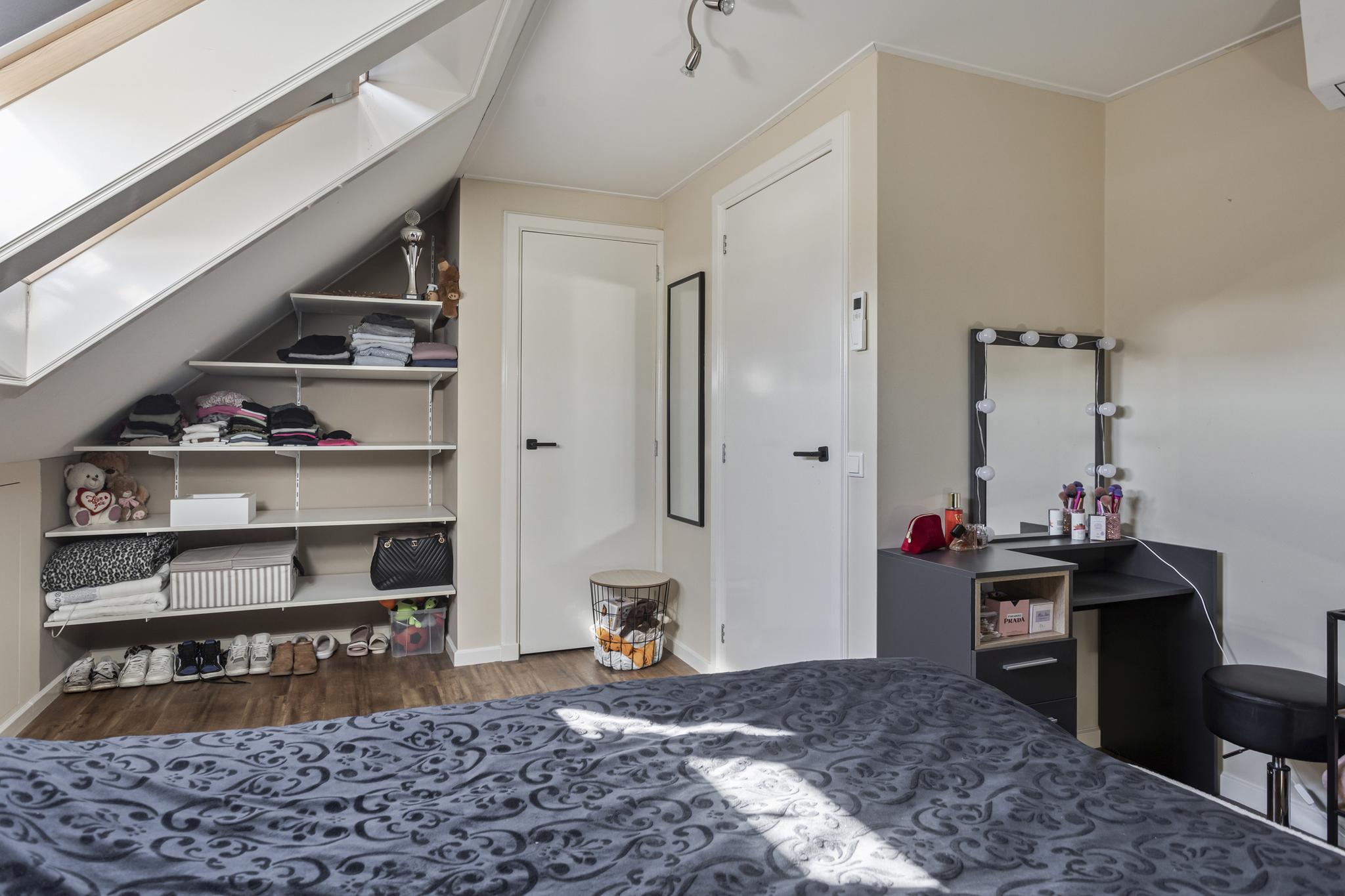 De zolder is in zijn geheel verbouwd en er zijn een 3e en 4e slaapkamer gecreëerd. Beide slaapkamers hebben 2 grote dakramen en een eigen airco (Daikin, 2023). Naast bergruimte onder de knieschotten is er vanuit de voorzolder ook een vliering met toegang door middel van een vlizotrap.