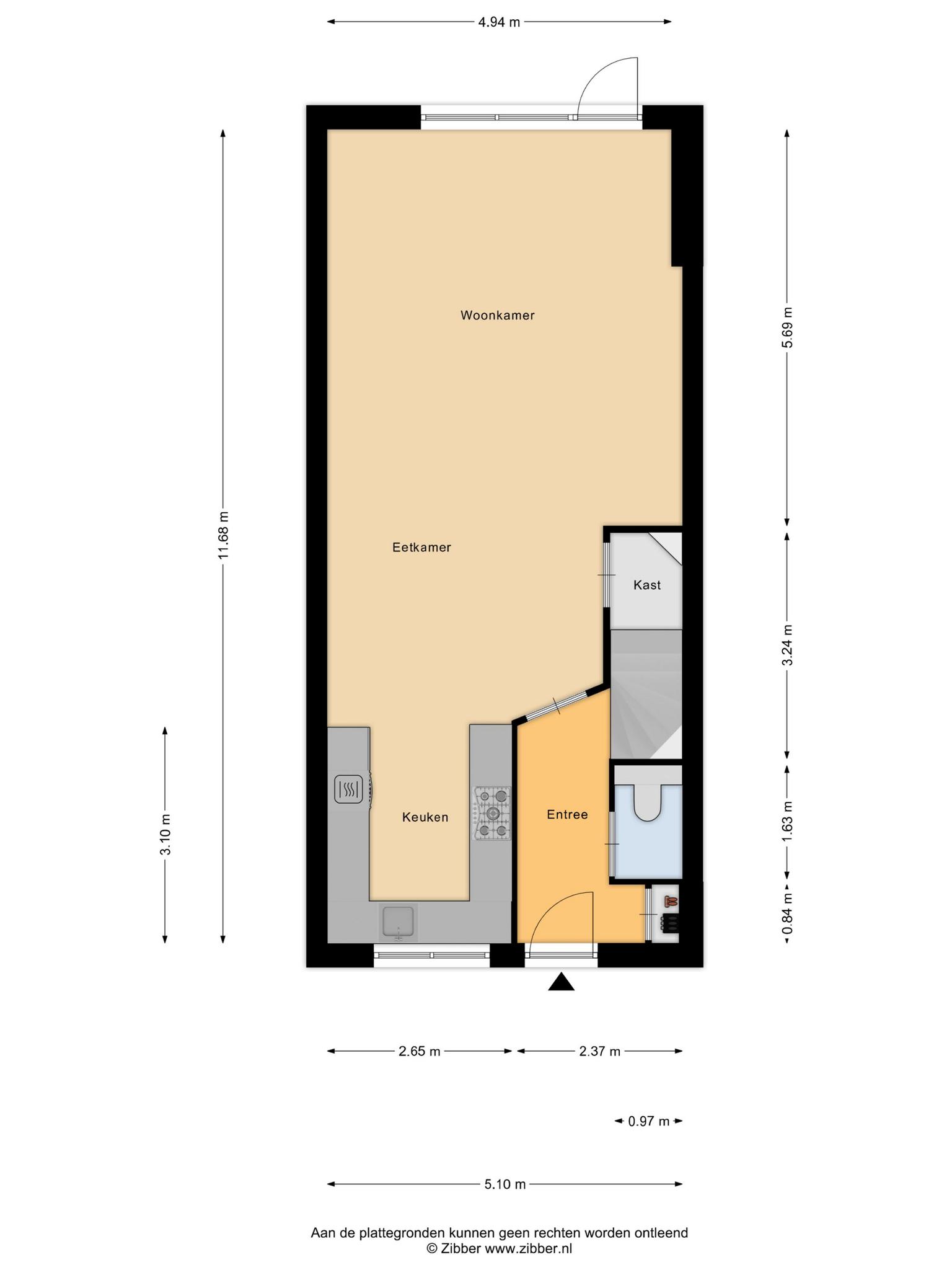 - 40 m² gelegen op het zuiden met achterom