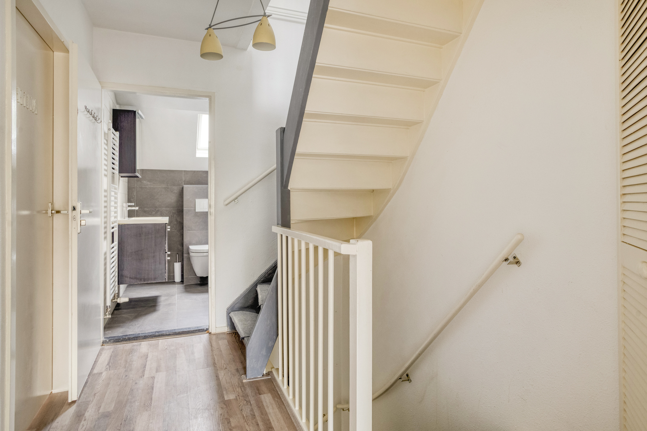 Bij binnenkomst betreed je de woning via de entreehal, die toegang biedt tot de meterkast, het toilet, de trap naar de eerste verdieping en de woonkamer. De ruime woonkamer is heerlijk licht en biedt volop mogelijkheden voor een gezellige zithoek en een grote eettafel. Vanuit de woonkamer heb je via een deur direct toegang tot de achtertuin. De open keuken aan de voorzijde van de woning is modern ingericht en voorzien van diverse inbouwapparatuur, waaronder een vaatwasser, koelkast, combi-magnetron en een quooker. Daarnaast is er een praktische trapkast die extra bergruimte biedt.