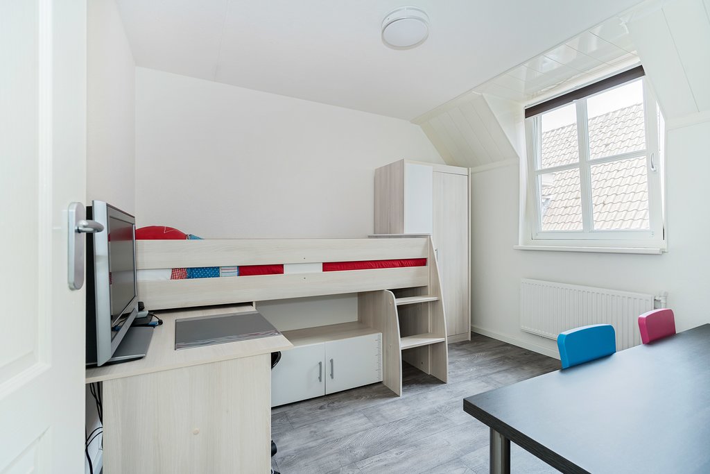 Slaapkamer twee is eveneens zeer licht te noemen en is gelegen aan voorzijde van de woning. De kamer is ruim genoeg (10 m²) om in gebruik te nemen als kinder-/hobby- of logeerkamer.
