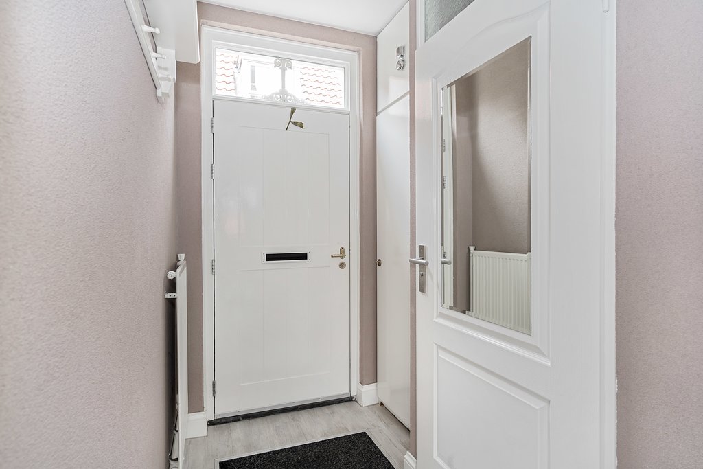 U komt middels de karakteristieke deur binnen in een hal net toegang tot de meterkast, het toilet (2016) en de woonkamer. De toiletruimte is voorzien van een zwevend closet en een fonteintje. Vanuit de hal bereikt u de woonkamer met grote raampartijen. De woonkamer is ruimtelijk, licht en ruim van formaat. De woonkamer is verdeeld in de drie zones. Aan de voorzijde de zithoek, aan de achterzijde de open leefkeuken met de eethoek.