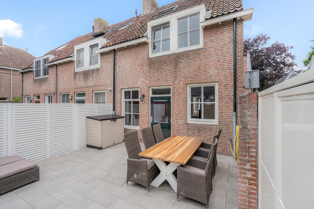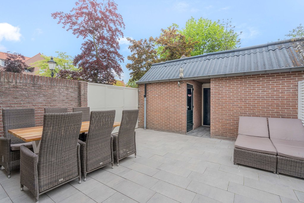 De achtertuin is gelegen op het noordoosten en is opnieuw bestraat. De tuin is ingericht met een zonneterras, grote poort naar de straat en een stenen berging achter in de tuin. De tuin beschik over veel zonuren en is onderhoudsvriendelijk in gebruik. De brede poort is gemonteerd zodat er één auto in de tuin geparkeerd kan worden.