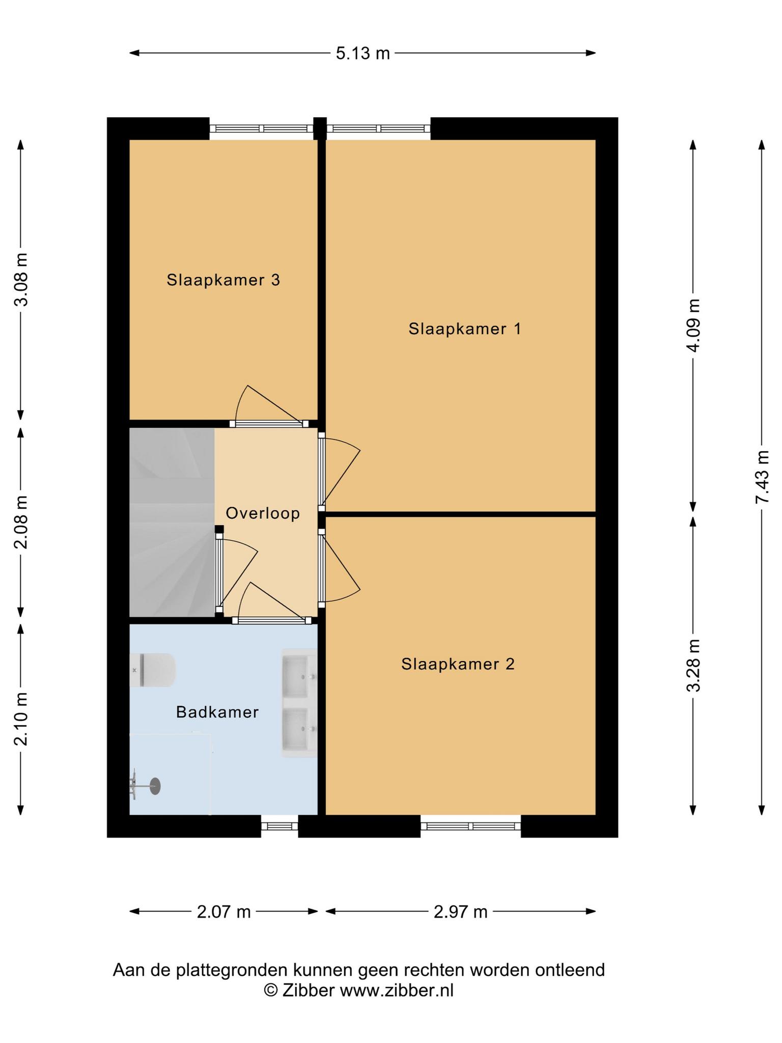 Middels de vaste trap vanuit de woonkamer bereikt u de eerste verdieping.